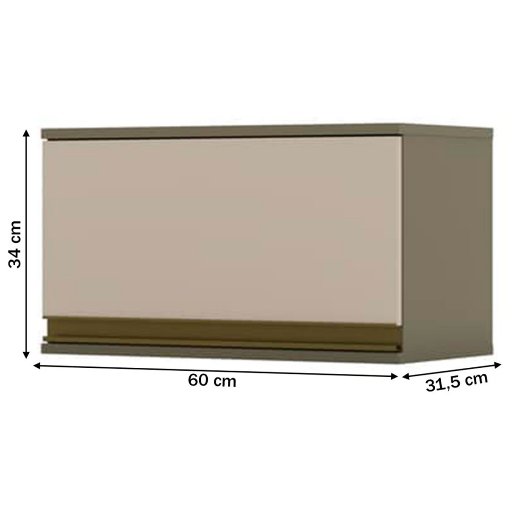Armário Aéreo Cozinha Évelin 1 Porta Duna/Cristal - Henn