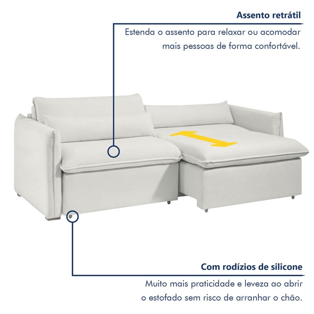 Sofá Cama 3 Lugares Aurora Retrátil Boucle Gelo - Celflex