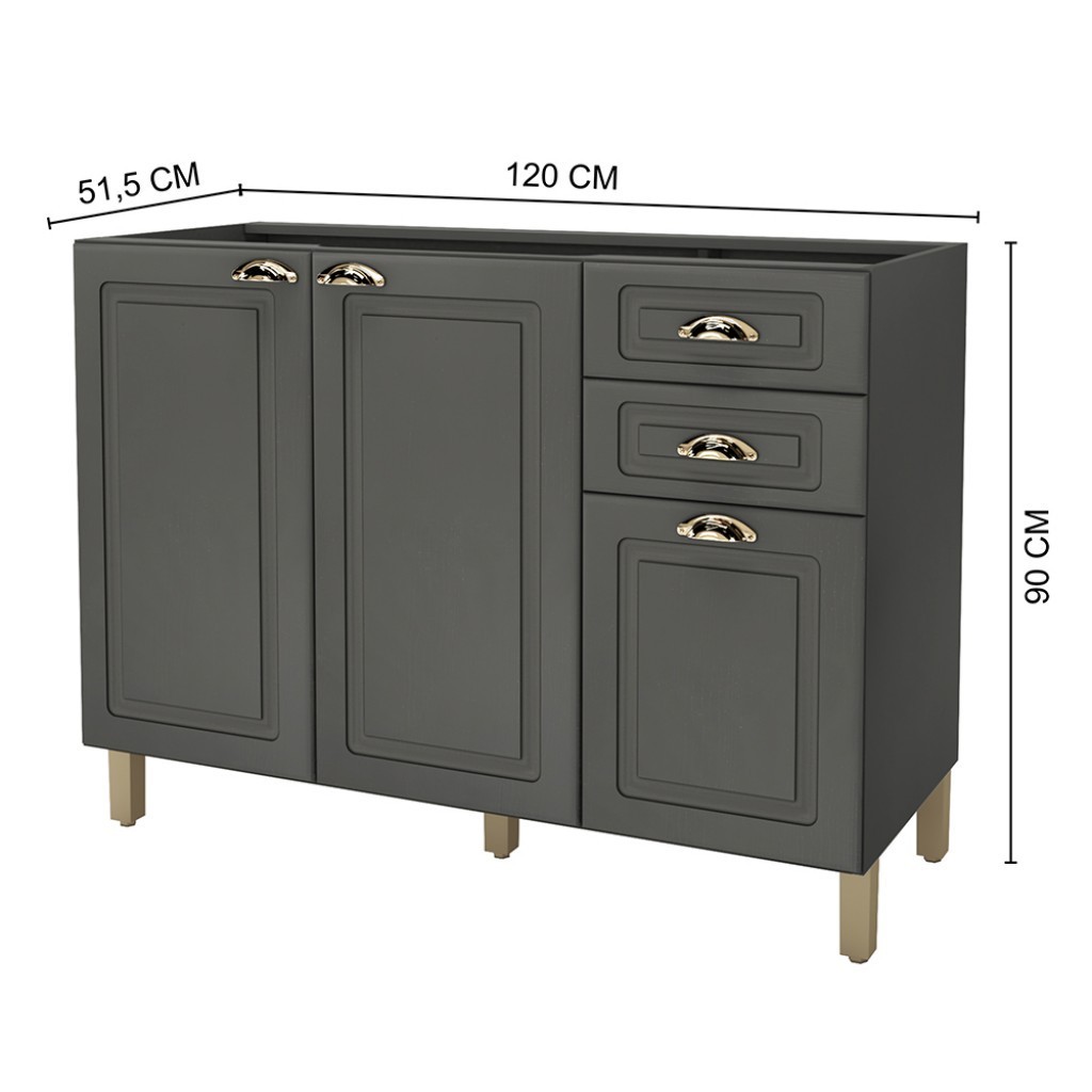 Balcão de Cozinha para Pia 120 Cm 3 Portas 2 Gavetas Chumbo 6171.2 - Indékes