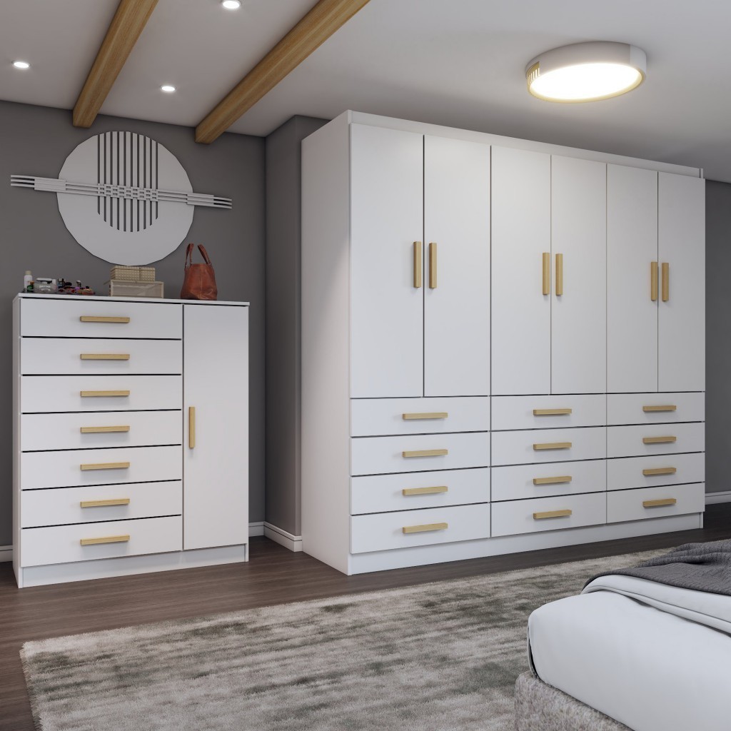 Guarda-Roupa Casal Catedral 6 Portas 12 Gavetas e Cômoda 1 Porta 7 Gavetas