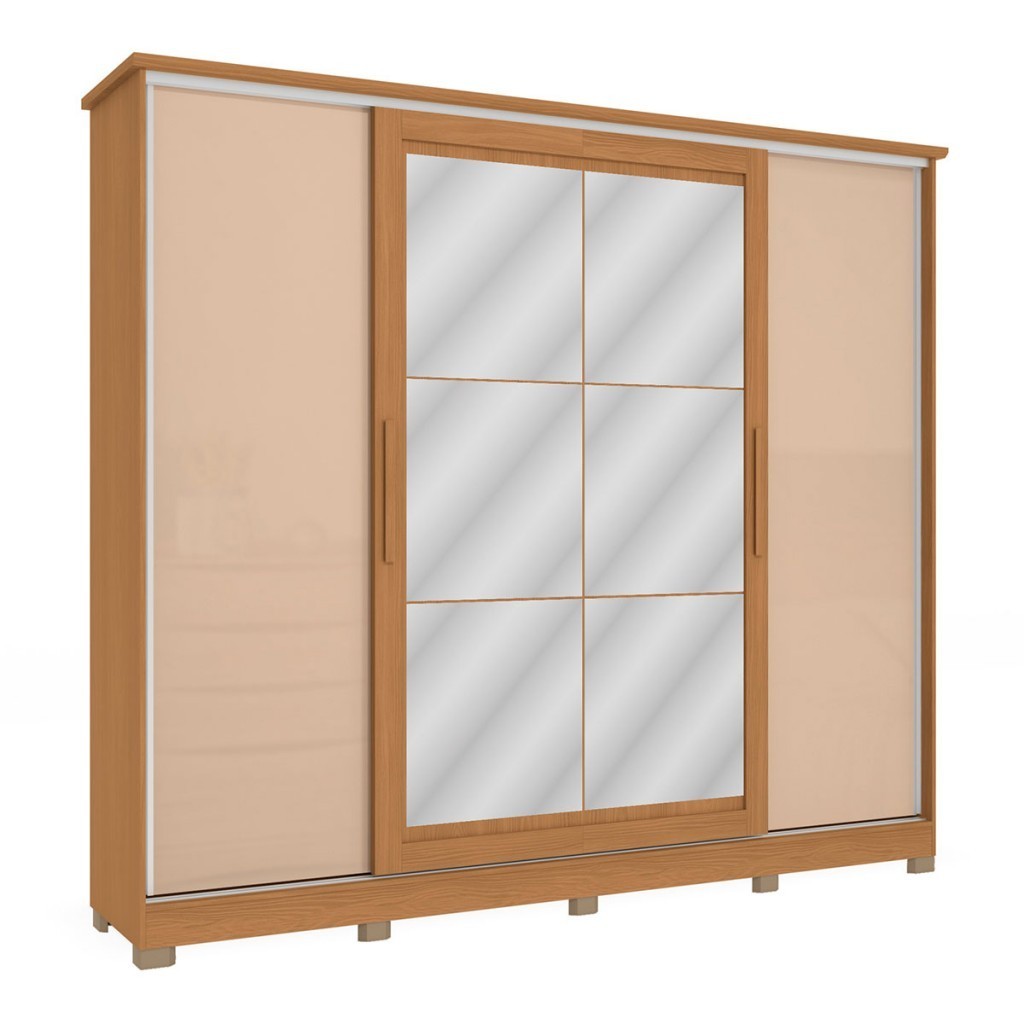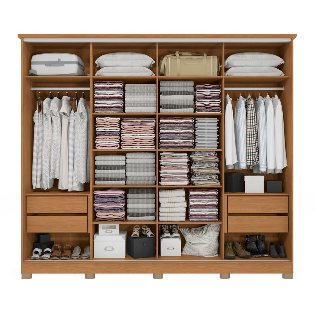 Guarda-Roupa Casal 4 Portas 4 Gavetas com Espelho Flex Canela/Macadamia - Kappesberg