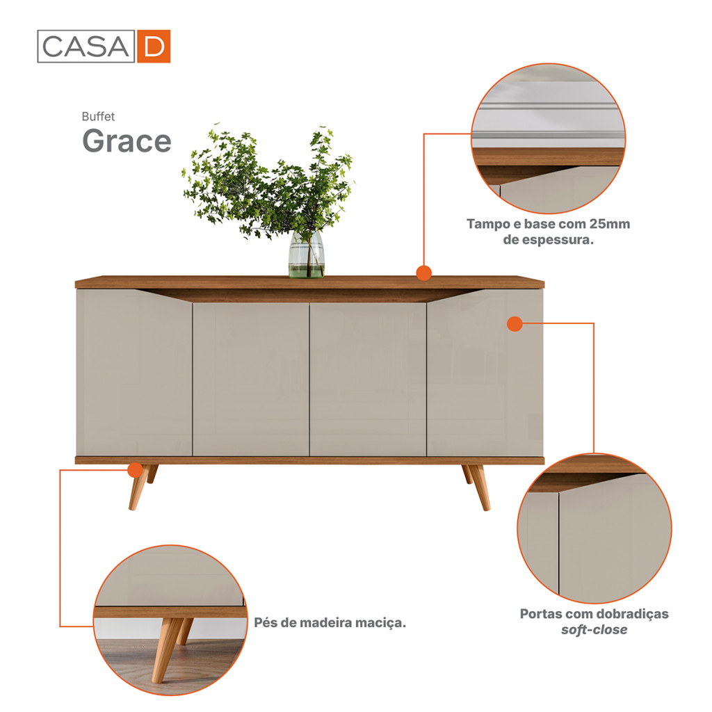 Balcão Buffet Grace 4 Portas Off White/Cedro 050.454 - Casa D