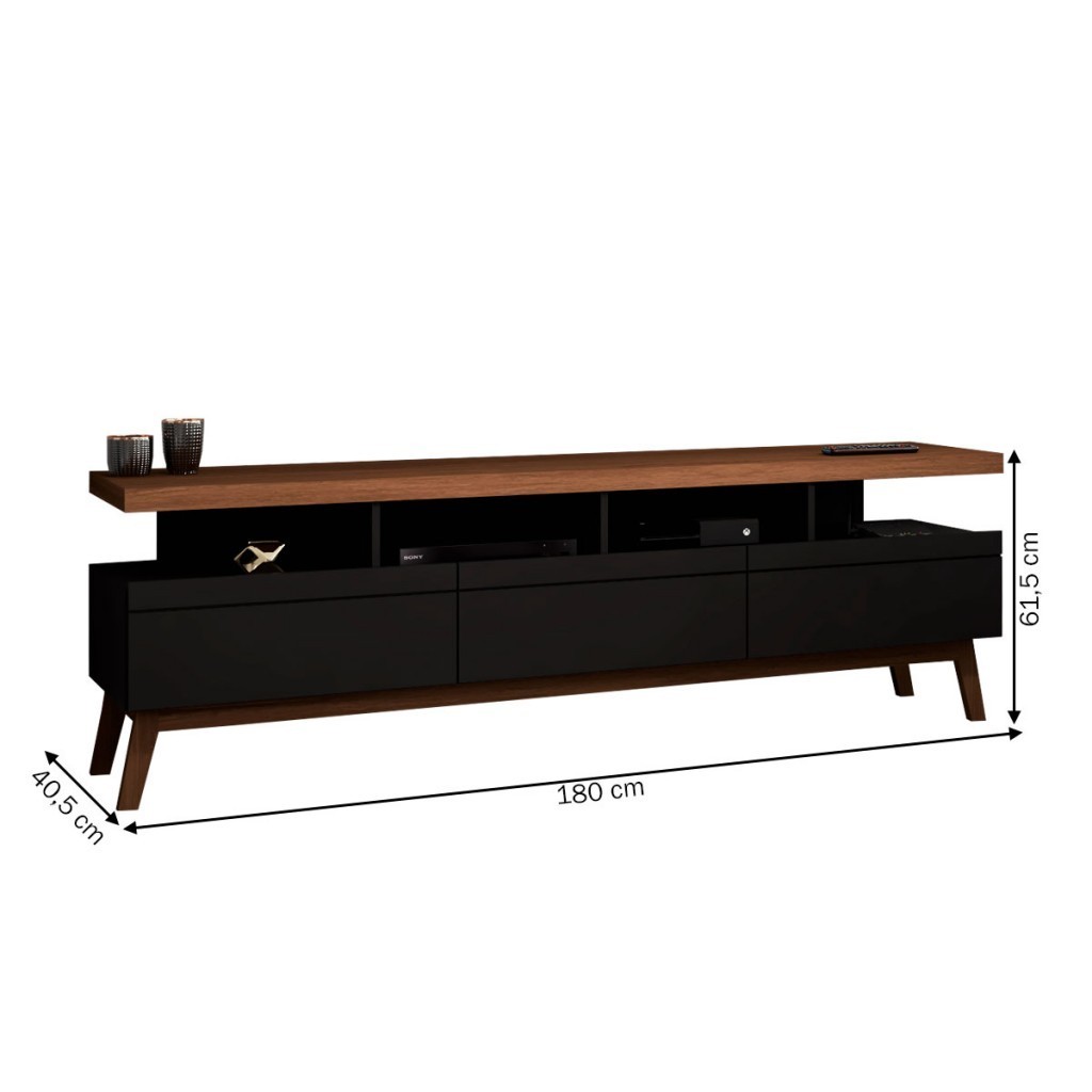 Rack para TV Até 70 Polegadas Street 3 Gavetas Black/Freijo - Panorama Móveis