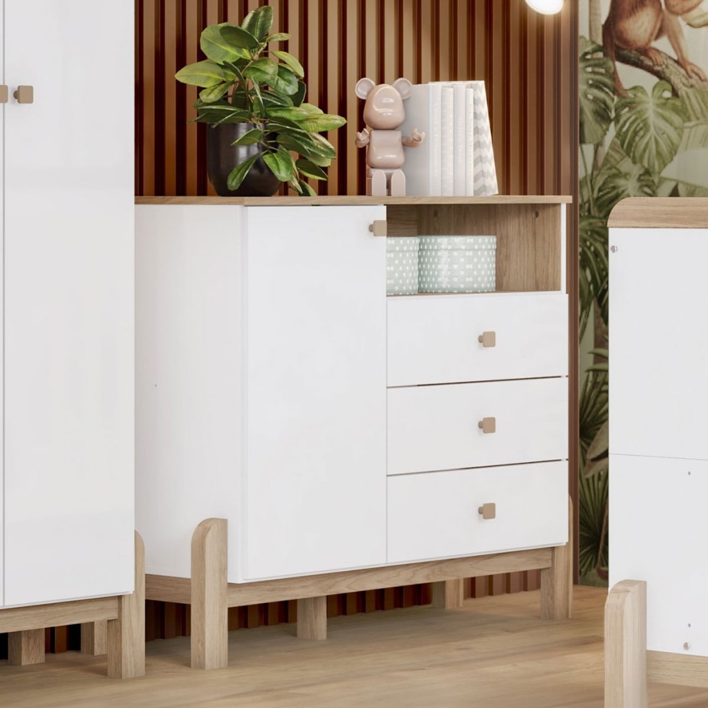 Cômoda Infantil Ternura 1 Porta 3 Gavetas Branco/Jequitibá - Henn