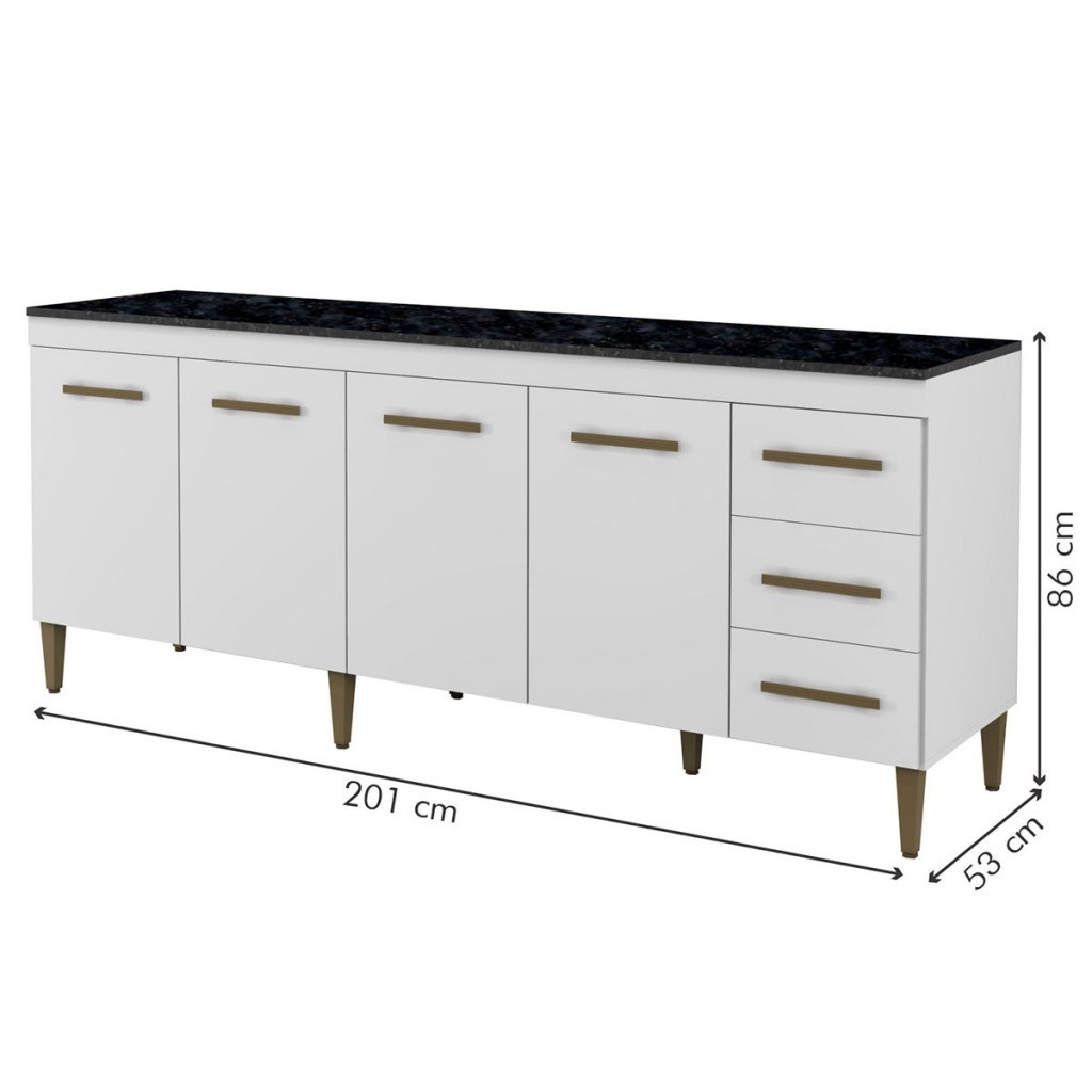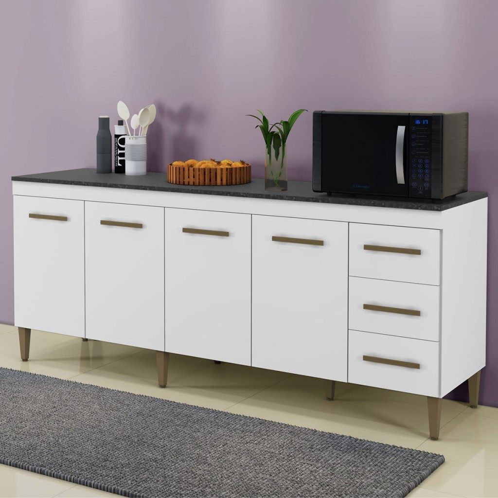 Balcão de Cozinha Atenas 4 Portas 3 Gavetas