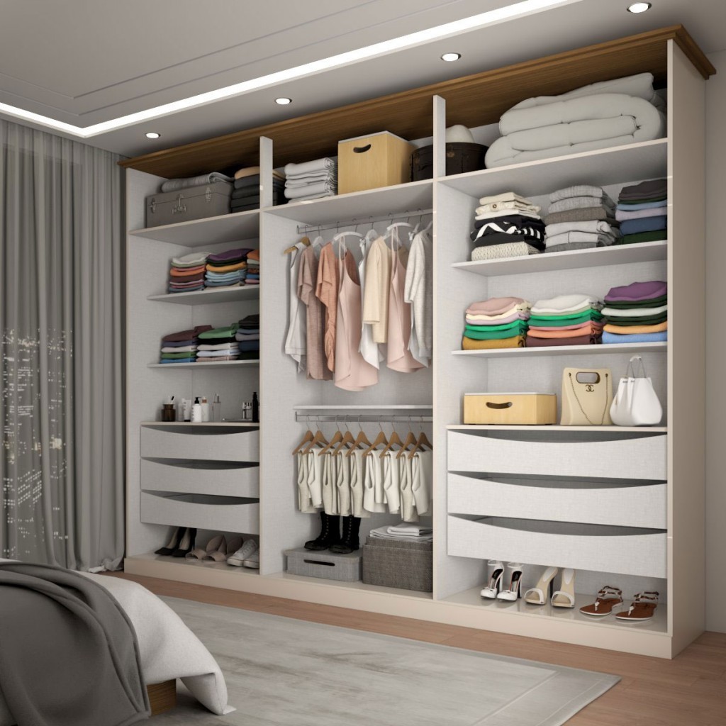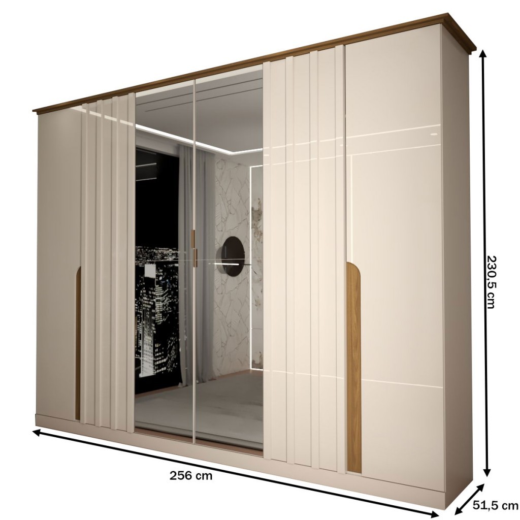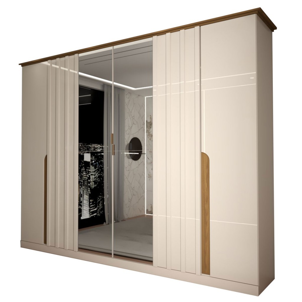 Guarda Roupa de Casal com Espelho 6 Portas 6 Gavetas Monumental Off White/Nature - Panorama Móveis