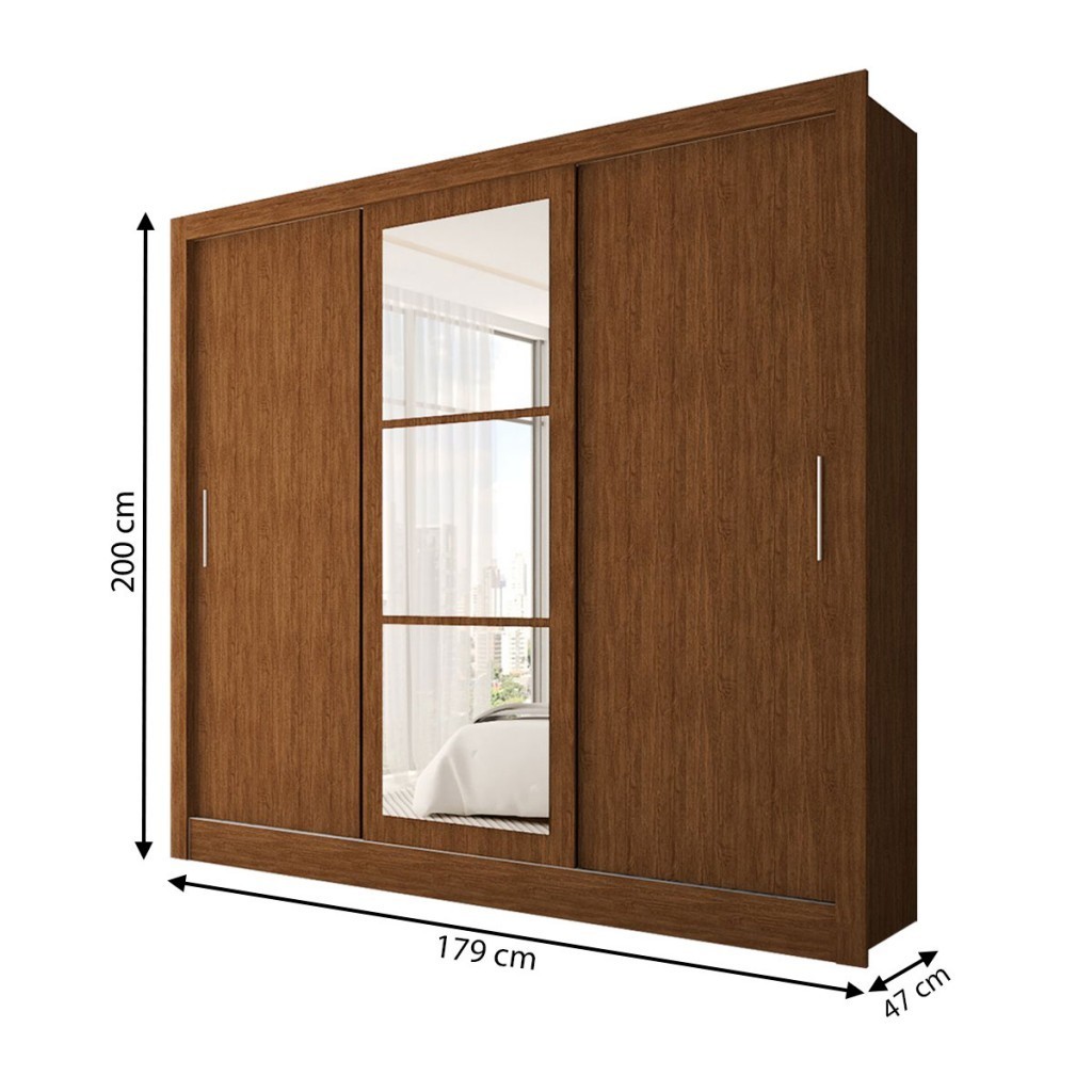 Guarda-Roupa Casal Sophia Slim 3 Portas com Espelho Cinamomo - Panorama Móveis