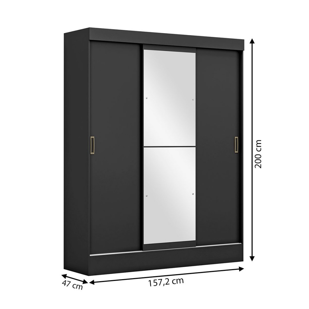 Guarda-Roupa Solteiro San Marino 3 Portas 2 Gavetas com Espelho Flex Preto/Off White - Maxel
