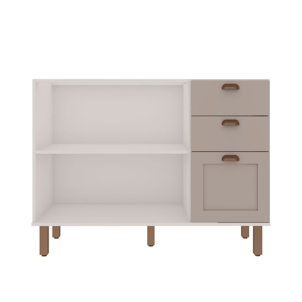 Balcão de Cozinha 120cm Iluminata 100% Mdf 2 Portas 3 Gavetas Branco/Fendi - Genialflex