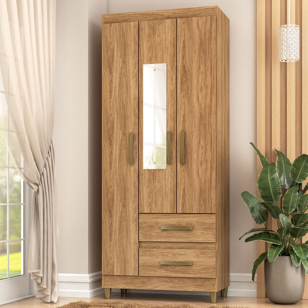Guarda-Roupa Solteiro Rinaldi 3 Portas 2 Gavetas com Espelho - Pnr Móveis