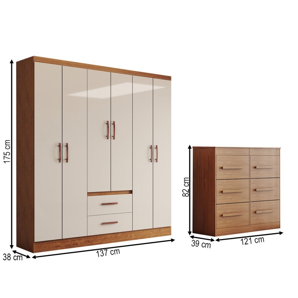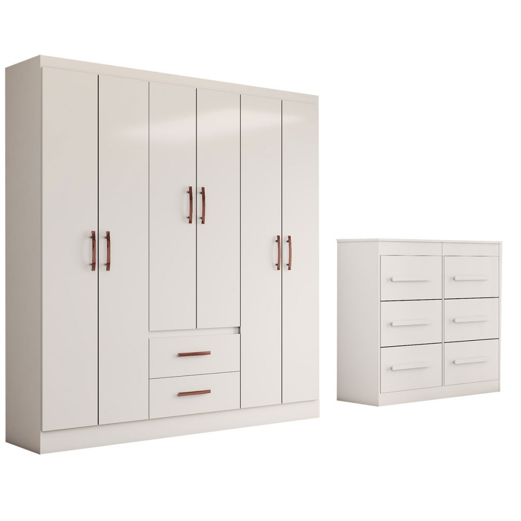 Guarda-Roupa Solteiro Europa 6 Portas 2 Gavetas e Cômoda 6 Gavetas - Panorama Móveis