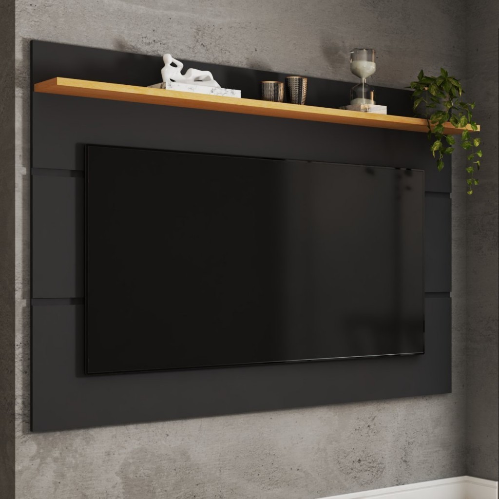 Painel para TV Até 70 Polegadas Bristol 1 Prateleira Black/Freijo - Panorama Móveis