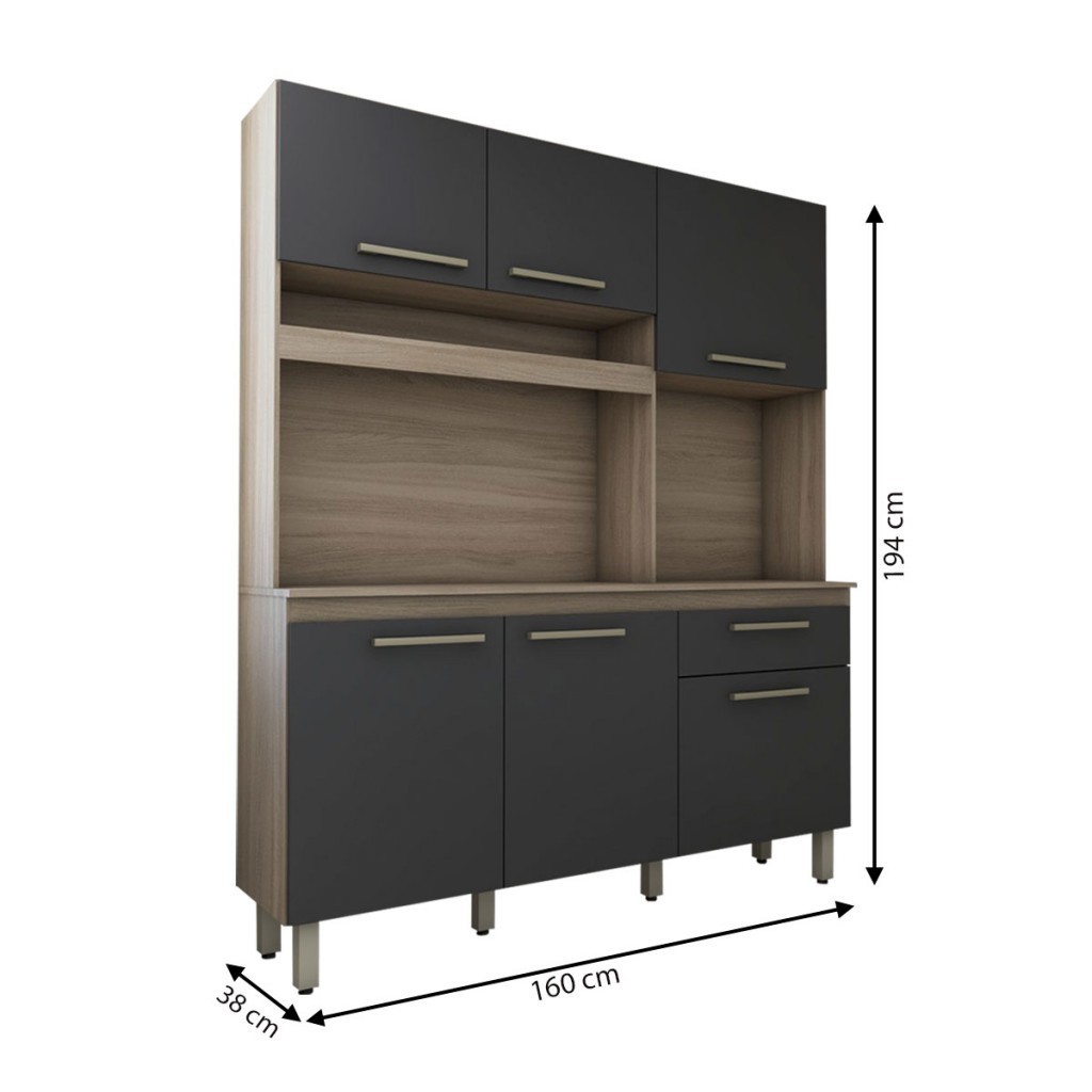 Cozinha Compacta Larissa 6 Portas 1 Gaveta Freijó/Grafite - Panorama Móveis
