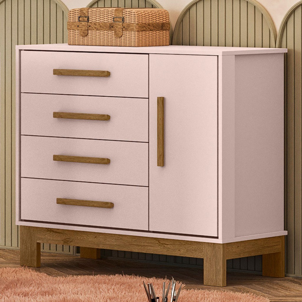 Cômoda Infantil Q Encanto 1 Porta 4 Gavetas Rosa - Qmovi