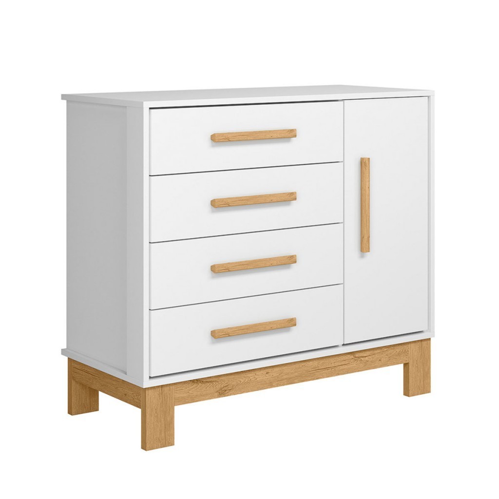 Cômoda Infantil Q Encanto 1 Porta 4 Gavetas Branco Acetinado - Qmovi