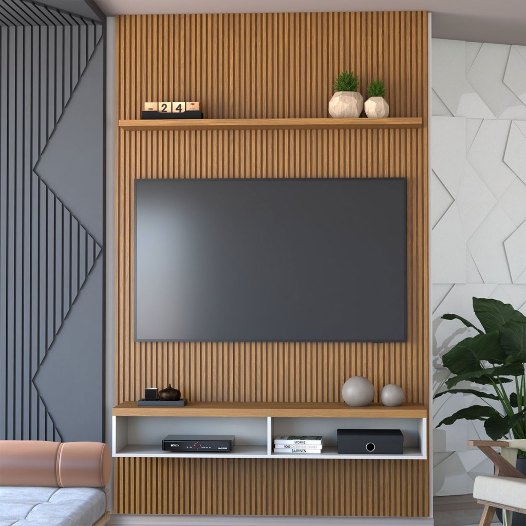 Painel para TV Até 60 Polegadas Apolo Ripado 1 Porta 140 Cm Nature/Off White - Panorama Móveis