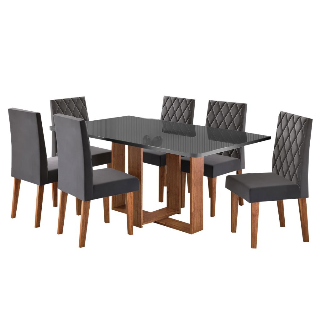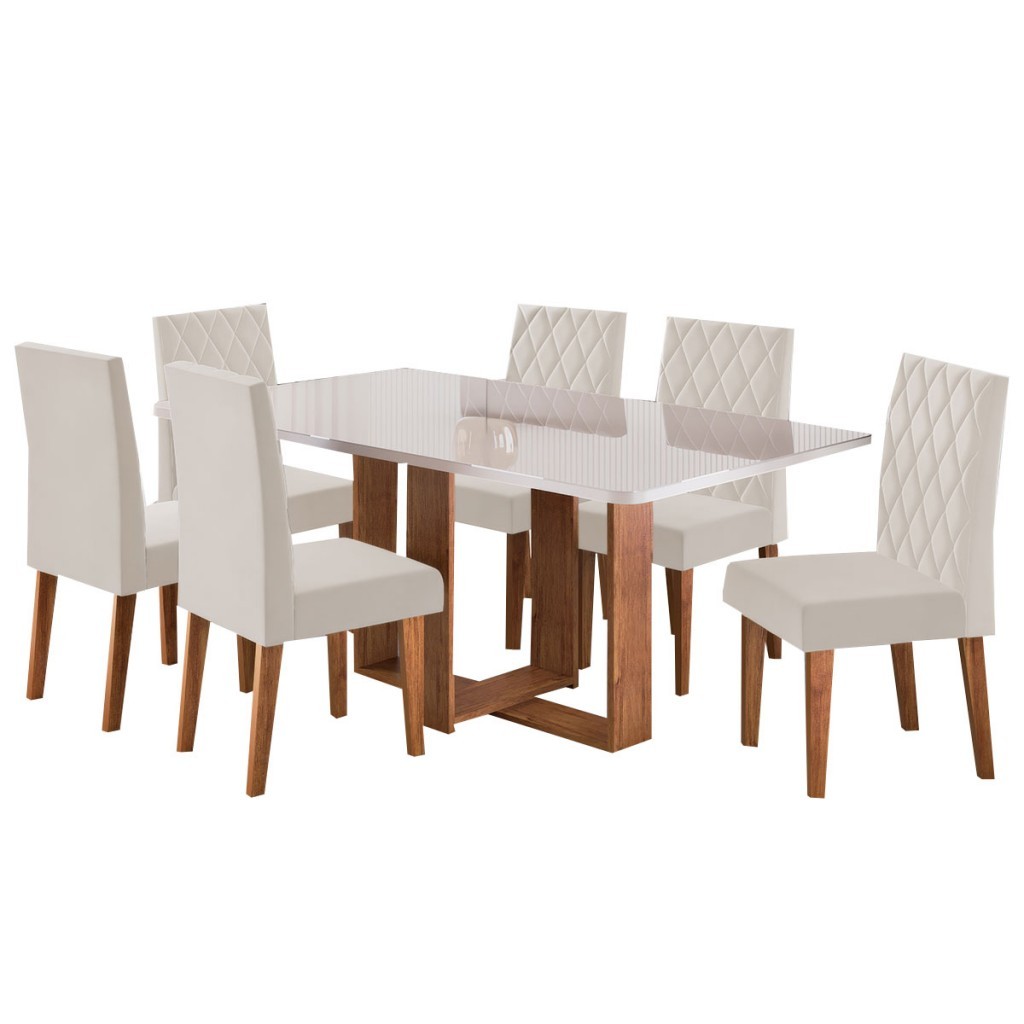 Mesa de Jantar 6 Lugares Afrodite com Vidro - Viero Móveis
