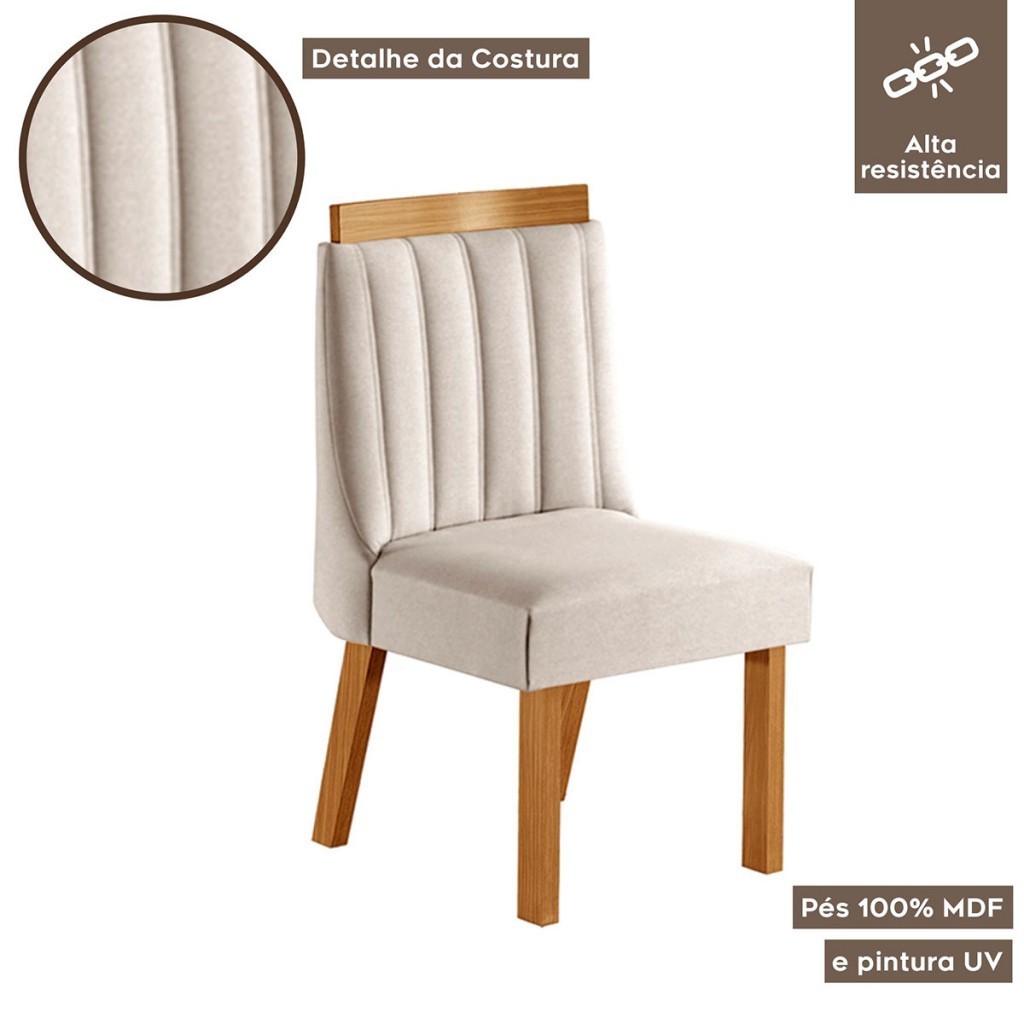 Cadeiras Kit 4 Cadeiras Lisboa Cinamomo/Suede Creme - Lj Móveis