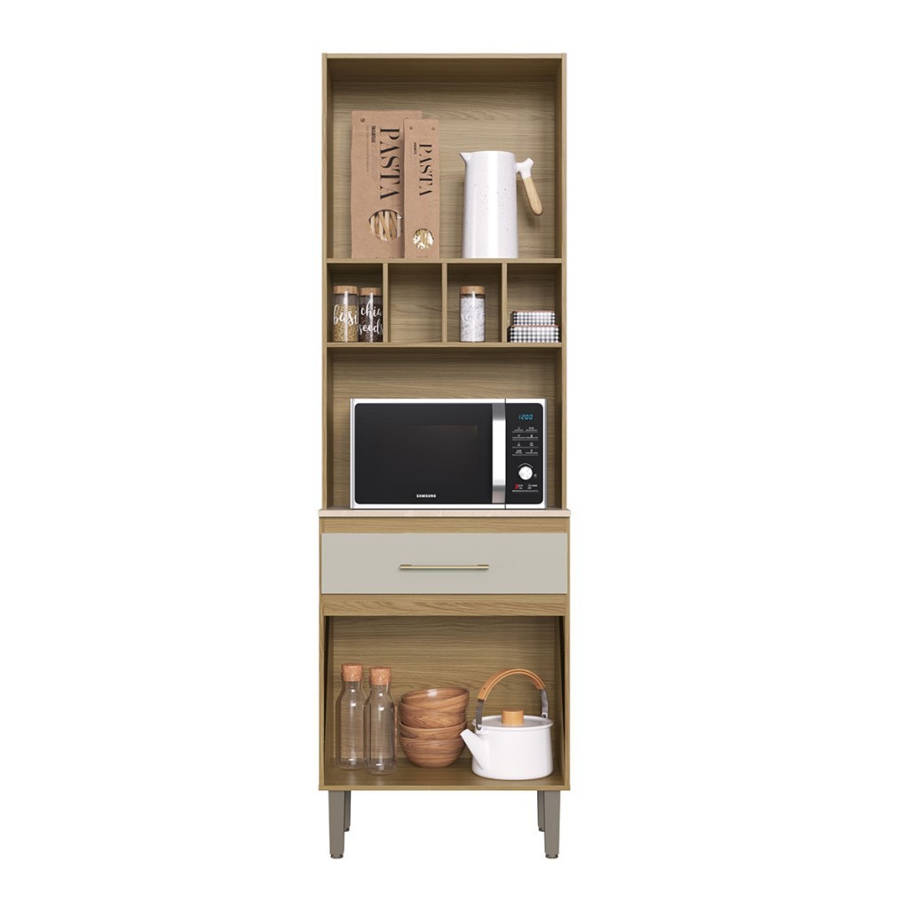 Paneleiro 3 Portas 1 Gaveta com Vidro Co4211 Ipê/Cristalo/Petra - Decibal