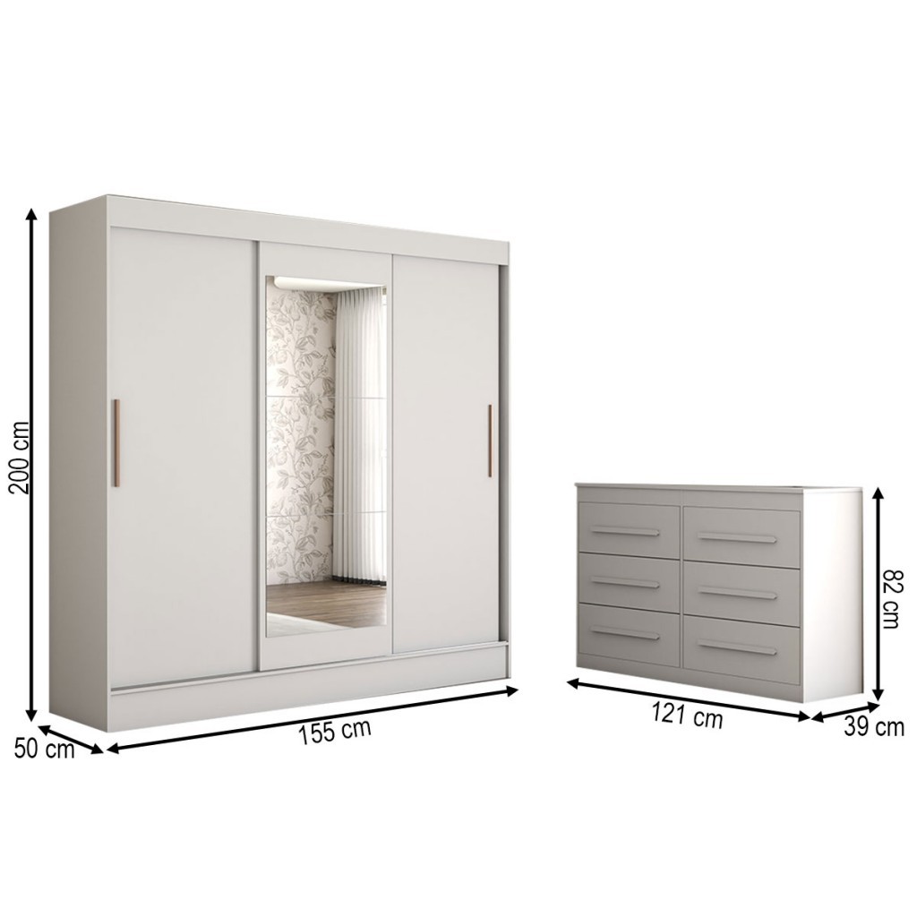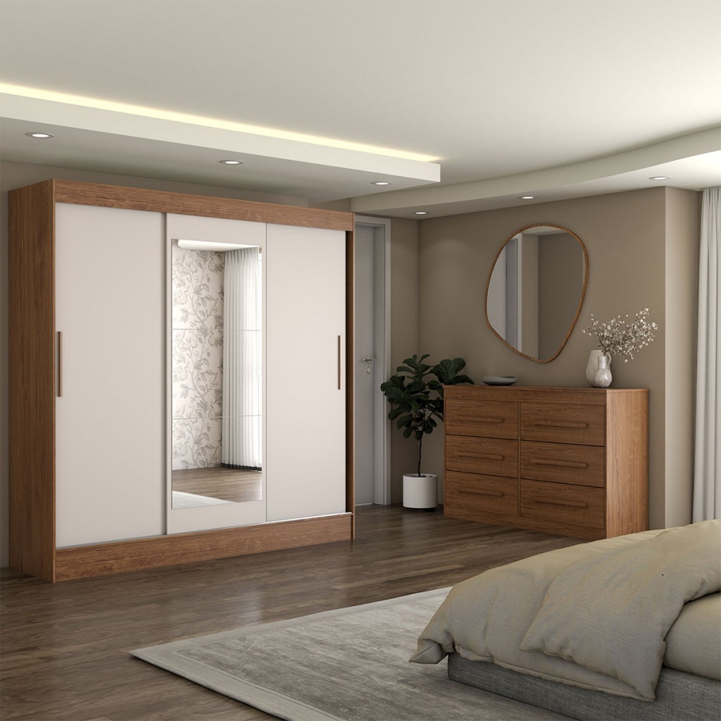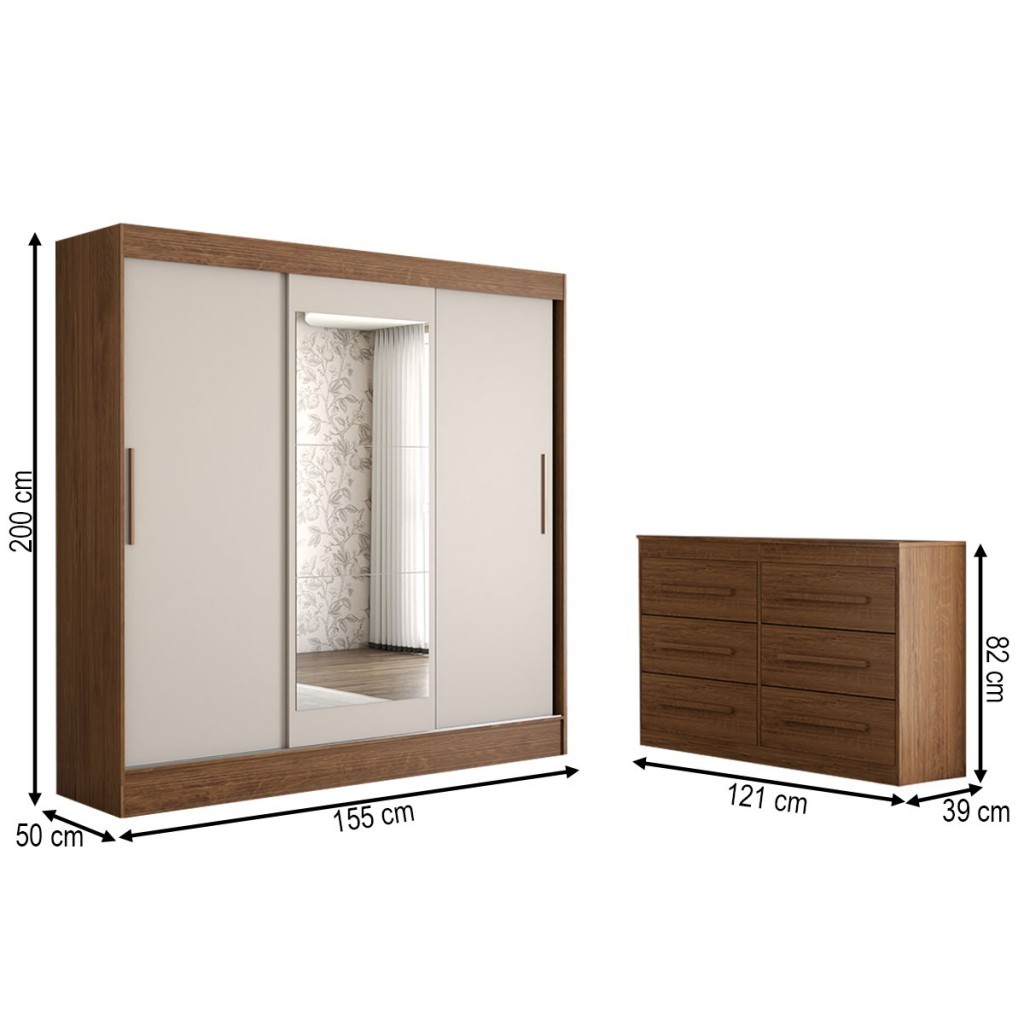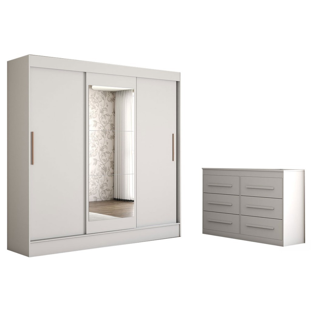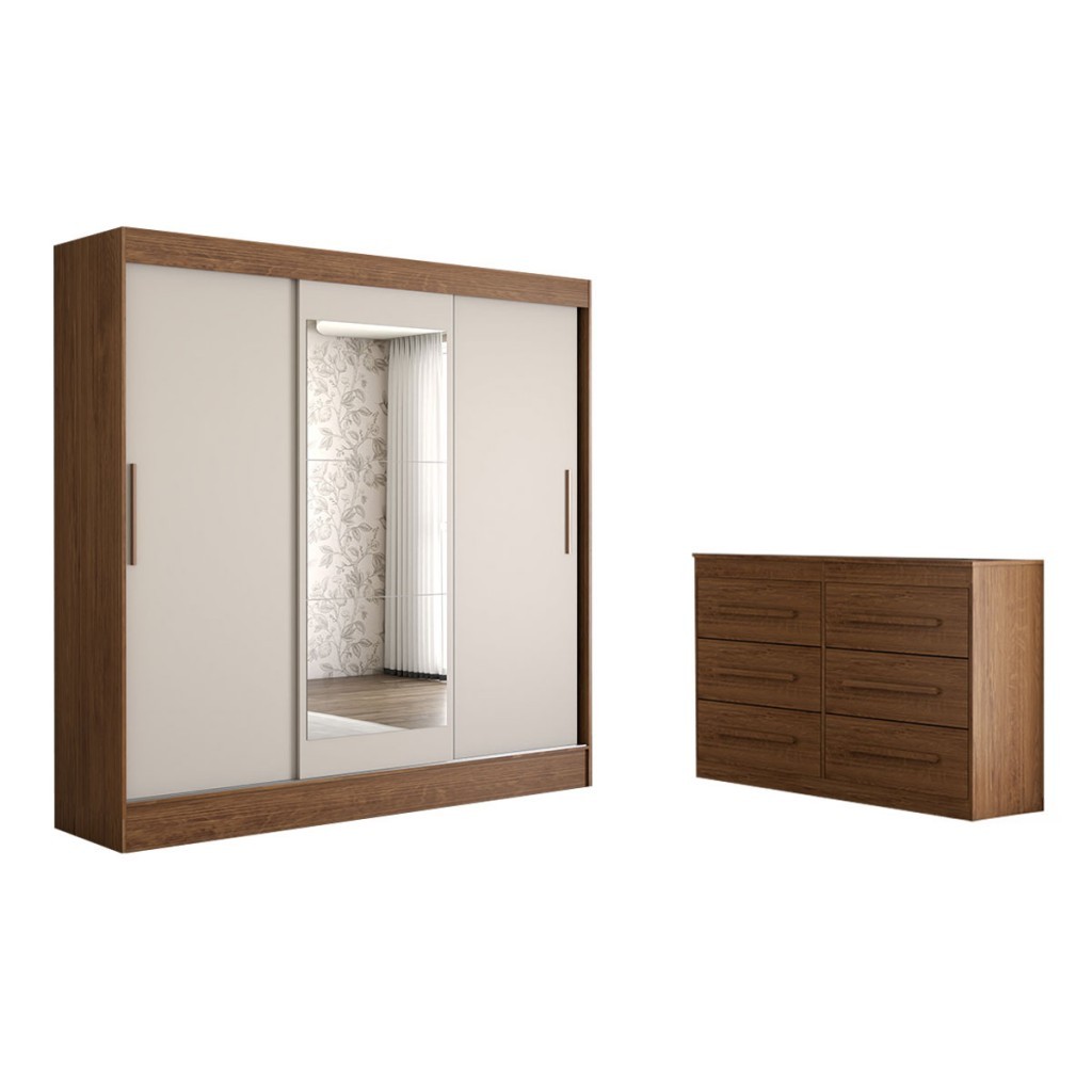 Guarda-Roupa Solteiro Europa 3 Portas 2 Gavetas e Cômoda 6 Gavetas Espelhado - Panorama Móveis