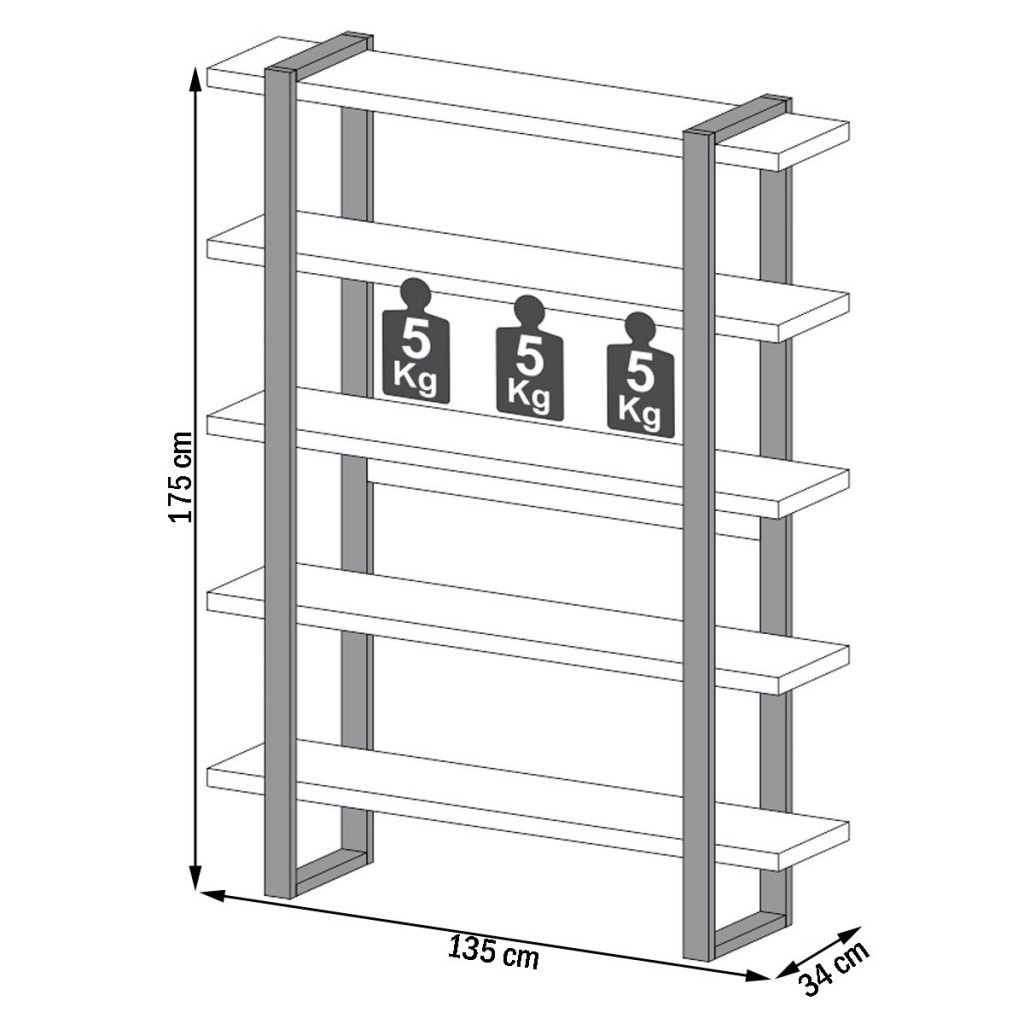 Estante para Livros 100% Mdf Industrial Concept 5 Prateleiras Freijó/Preto - Panorama Móveis