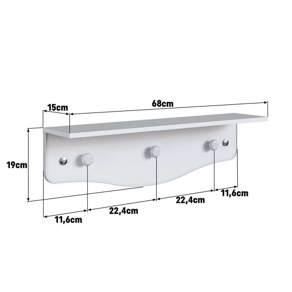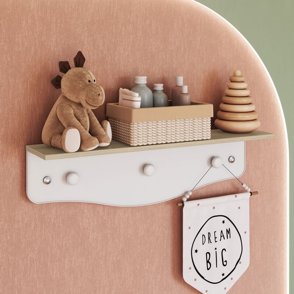 Prateleira Infantil com Cabideiro Linha Encanto cor Branco