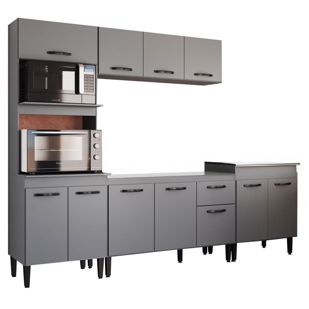 Armário de Cozinha Laís 11 Portas 1 Gaveta Cinza - Pnr Móveis