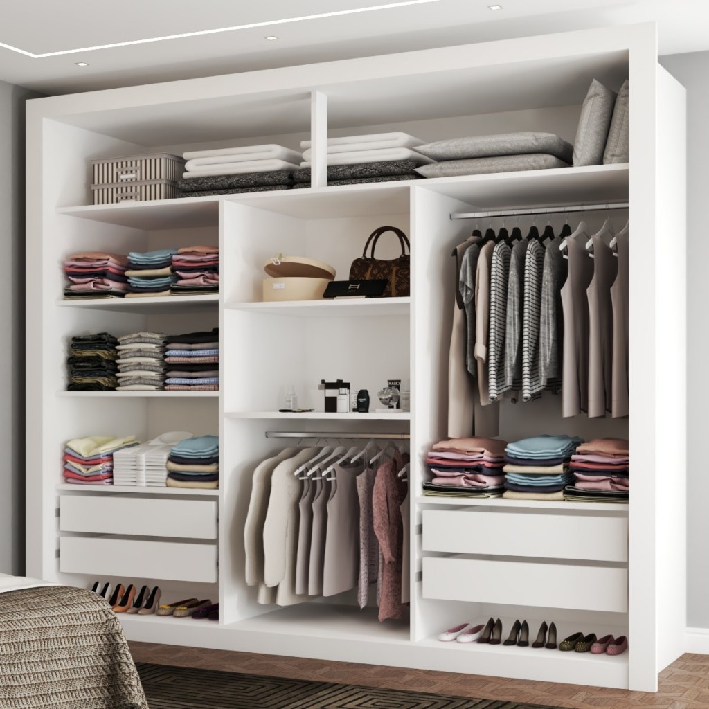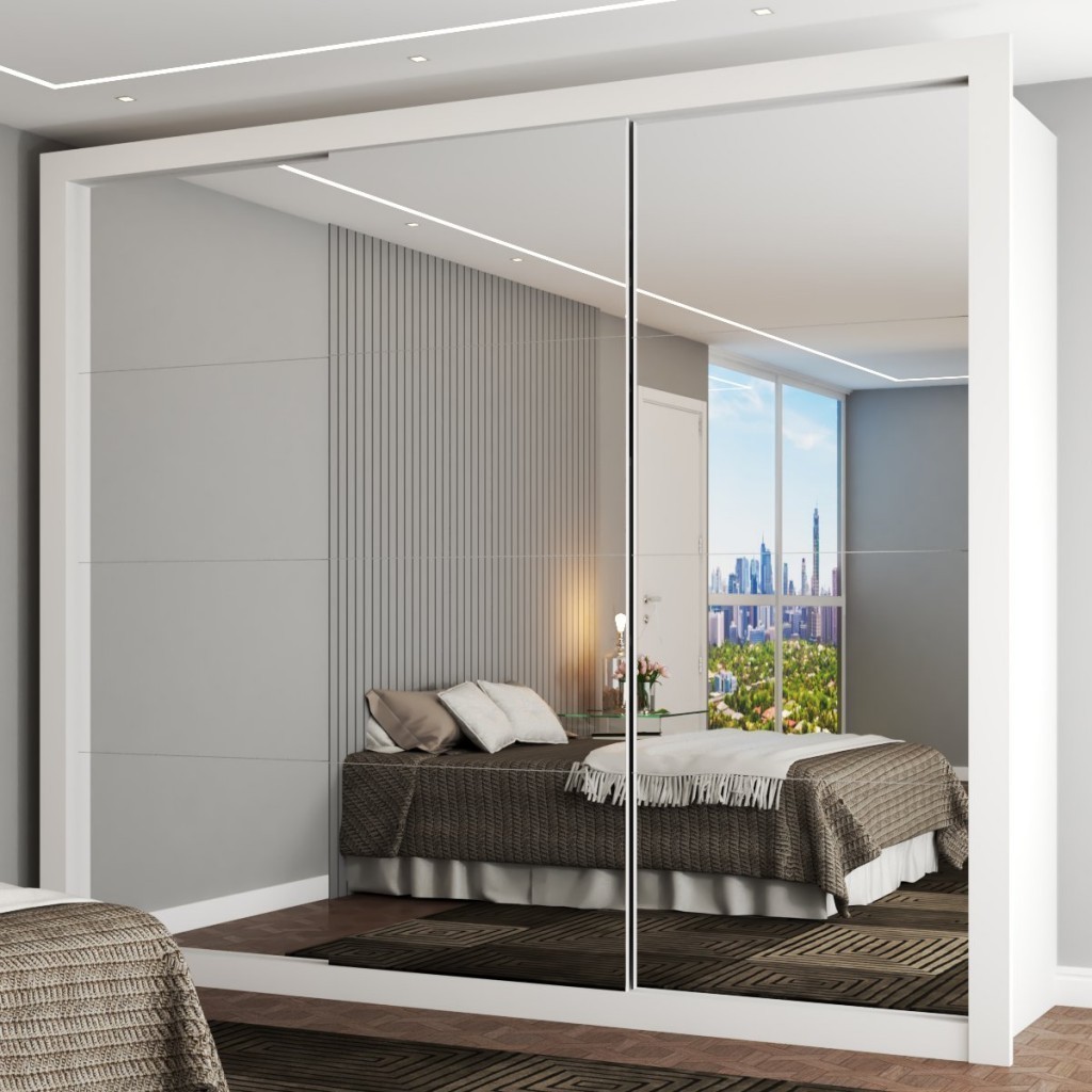 Guarda-Roupa Casal Olivia Diamantina 3 Portas de Correr 4 Gavetas Espelhado Branco - Panorama Móveis