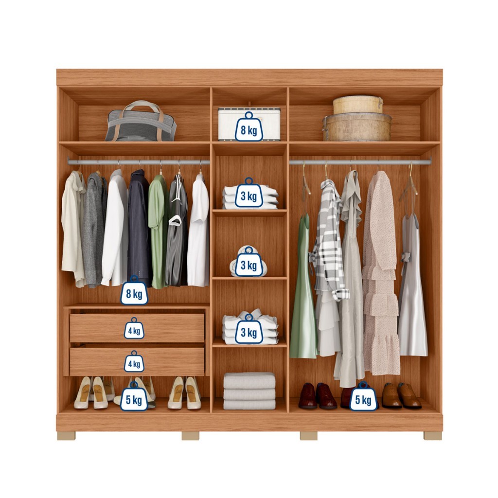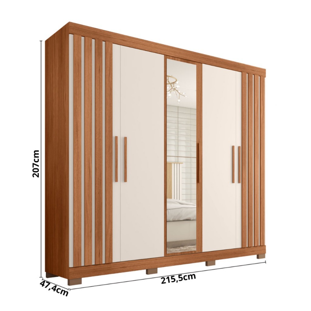 Guarda-Roupa Casal Antonella 5 Portas 2 Gavetas com Espelho Freijó/Off White - Pnr Móveis