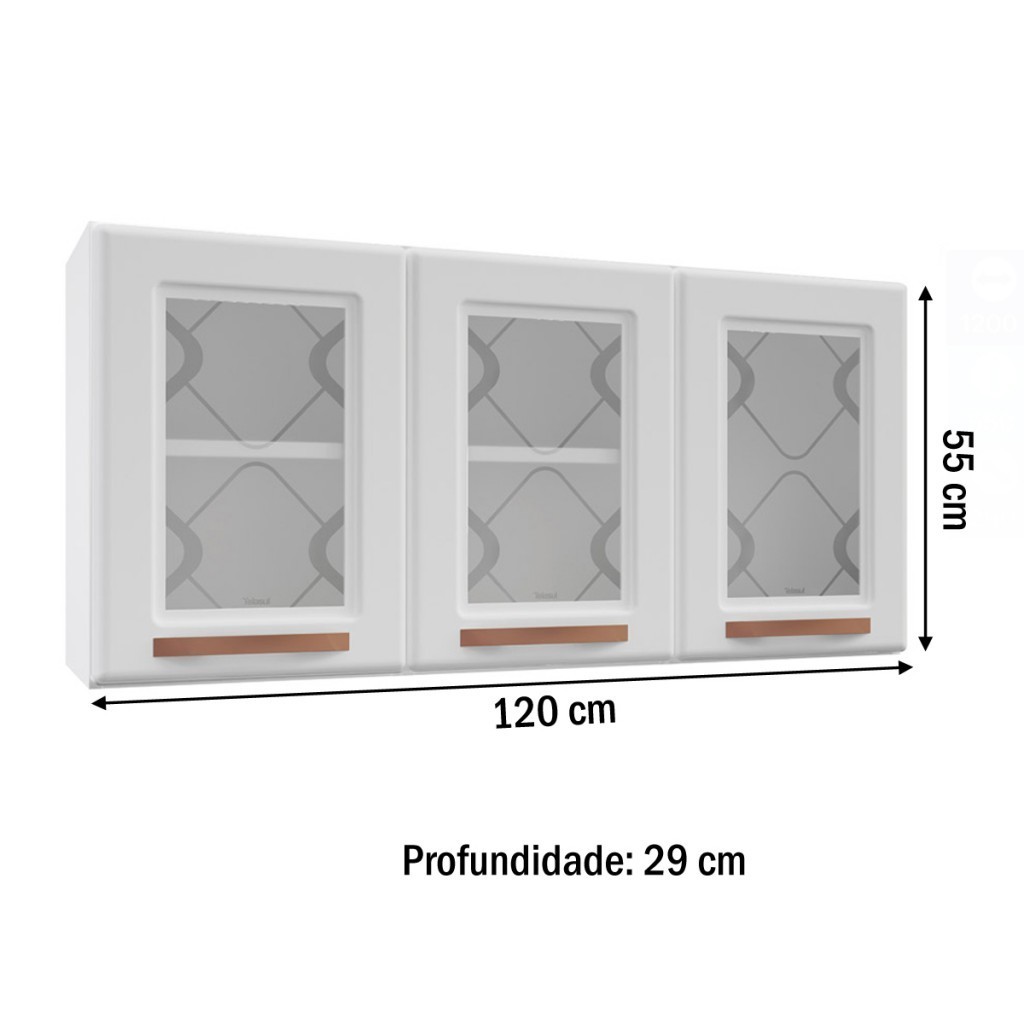 Armário Aéreo Cozinha em Aço Mirage New 3 Portas 1 Prateleira
