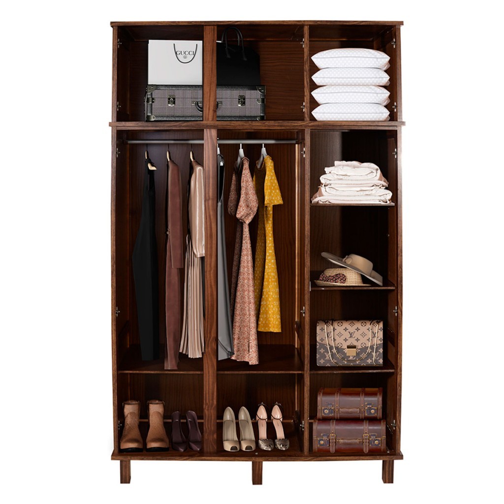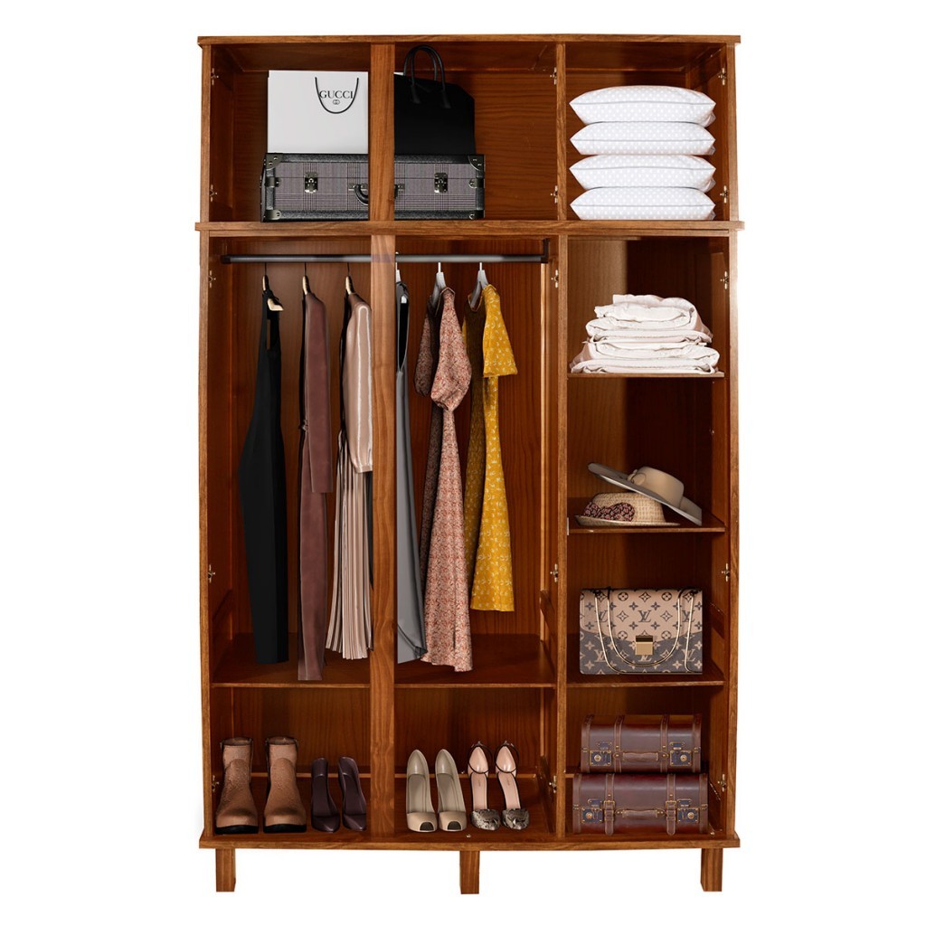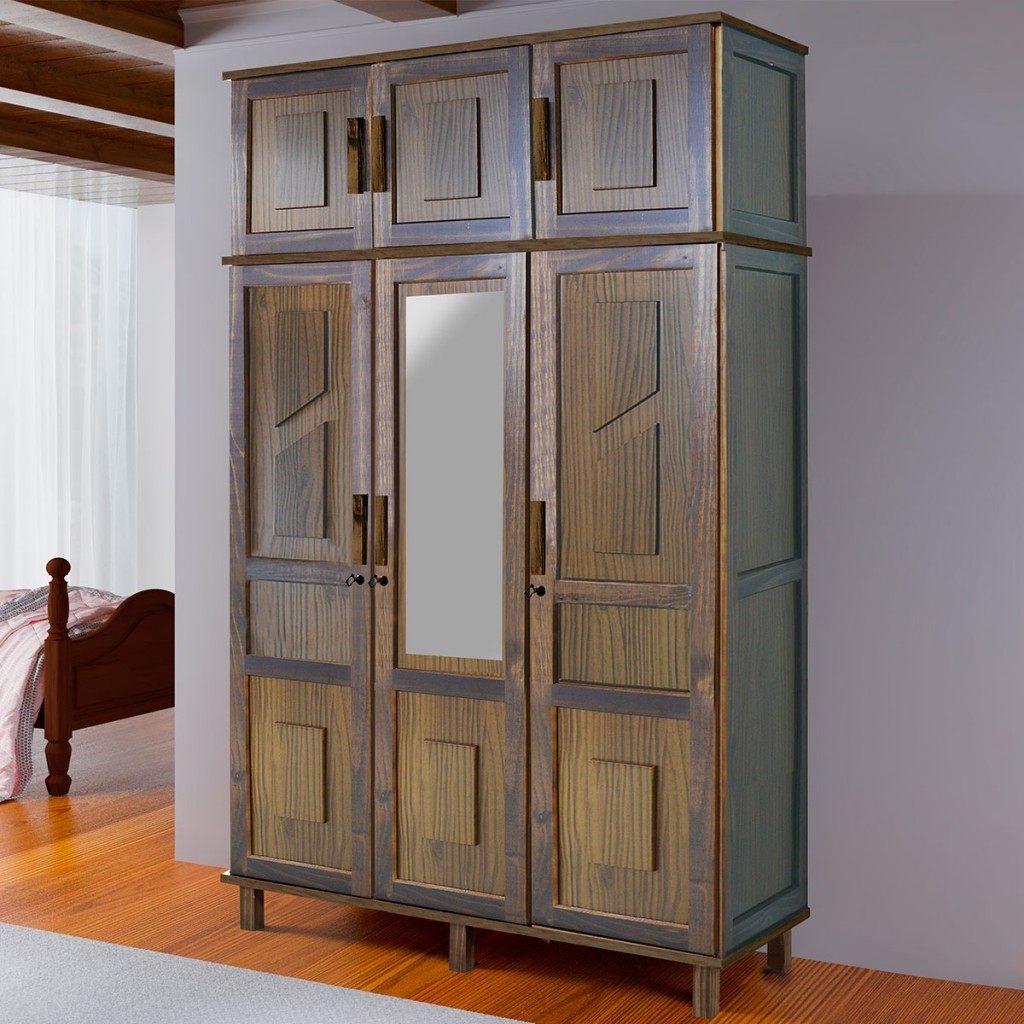 Guarda-Roupa Solteiro Suécia Madeira Maciça 6 Portas com Espelho - Pnr Móveis