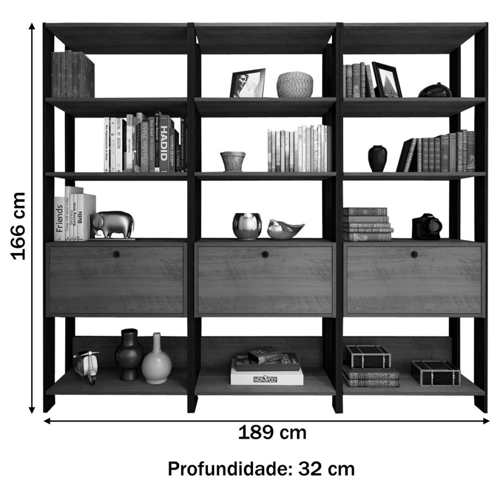 Conjunto Estantes para Livros Match 3 Portas Basculantes 9 Prateleiras