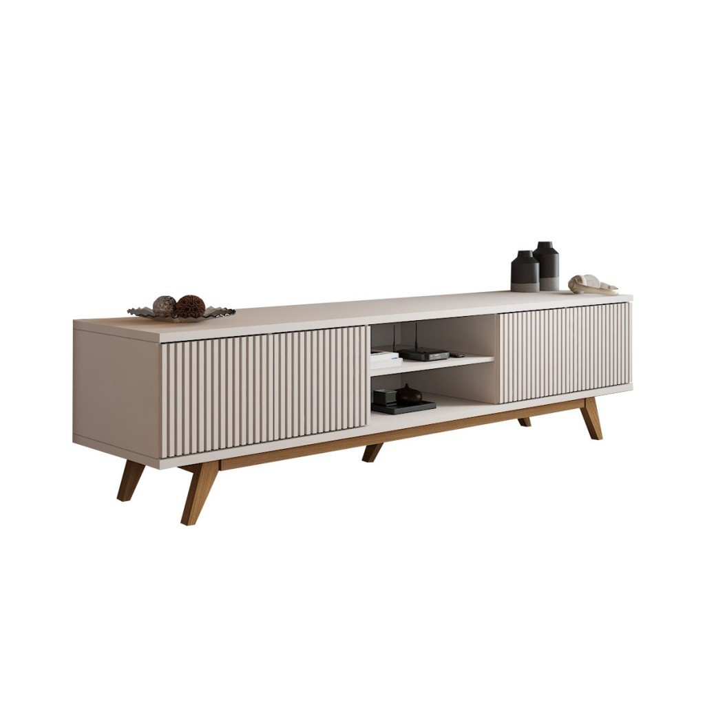 Rack para TV Até 75 Polegadas Silver 4 Portas 1 Prateleira Ripado Cinamomo/Off White - Panorama Móveis