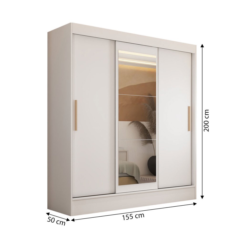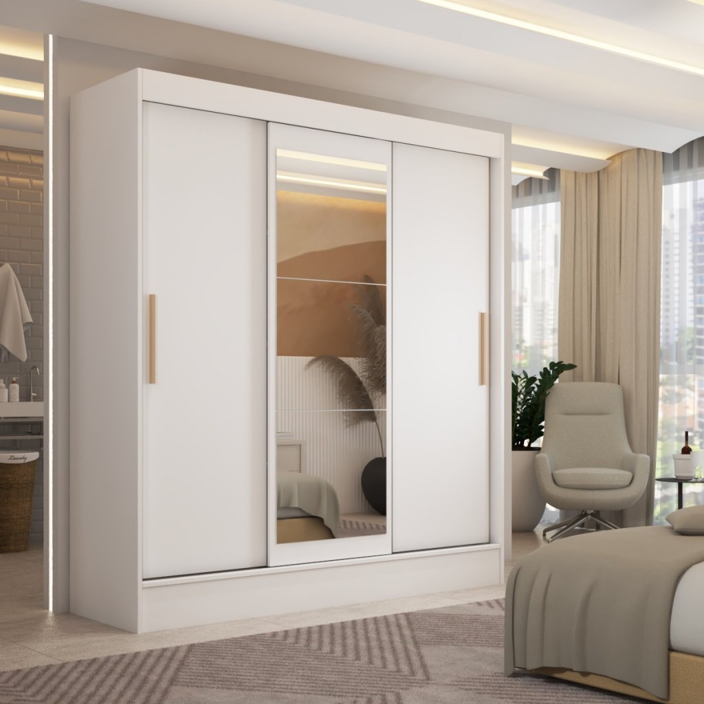 Guarda-Roupa Solteiro Dallas 3 Portas de Correr 2 Gavetas Branco - Panorama Móveis