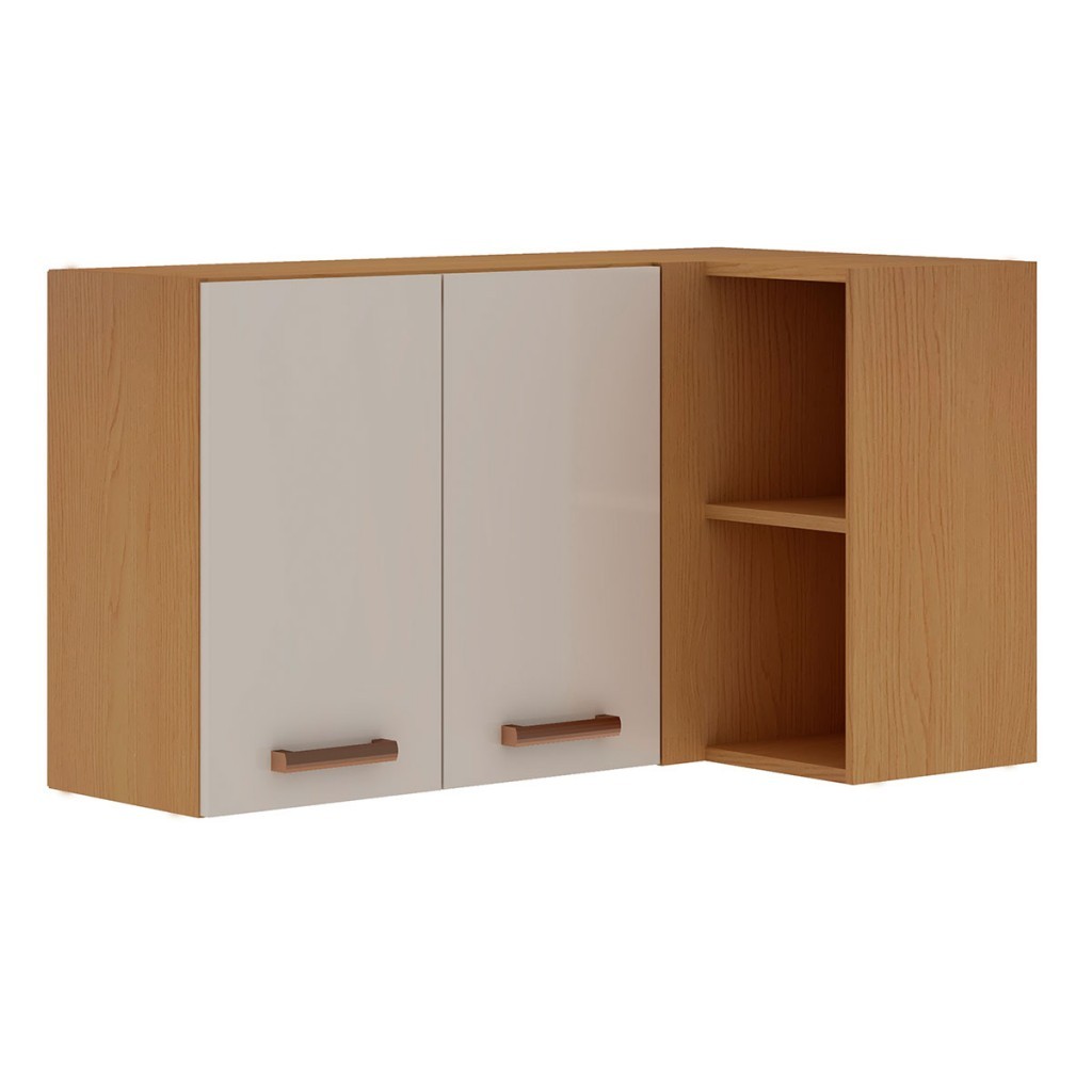 Armário Aéreo Cozinha de Canto 2 Portas 100% Mdf 1023 Freijó/Off White - Genialflex