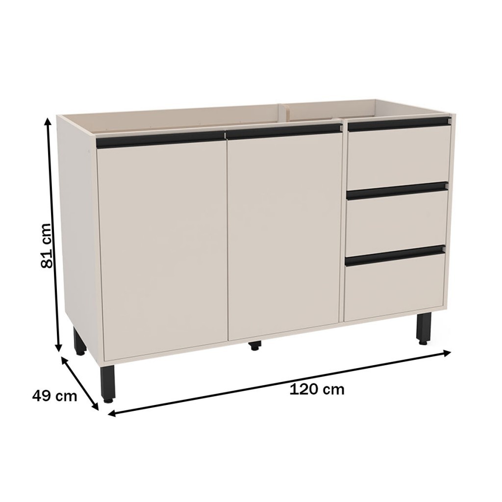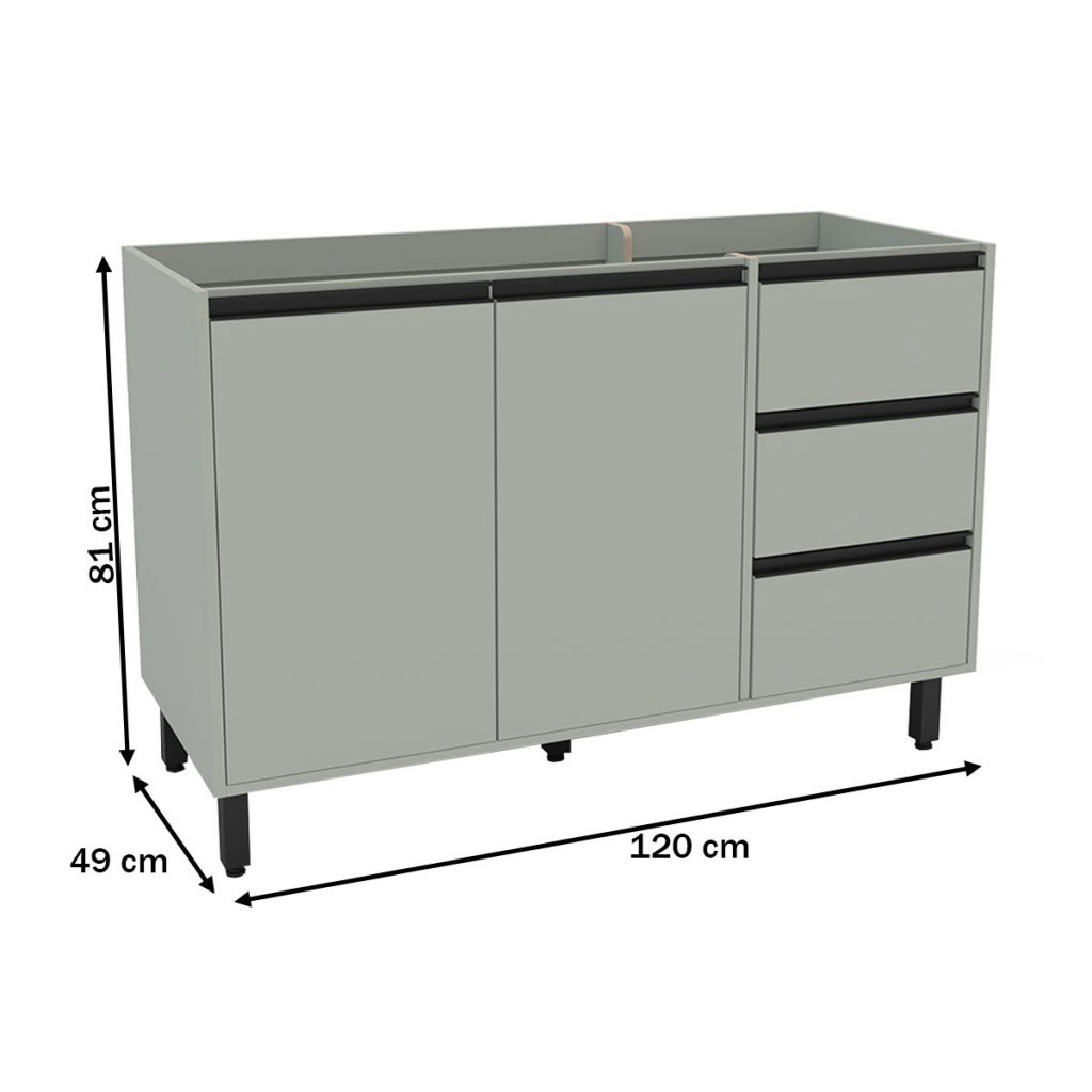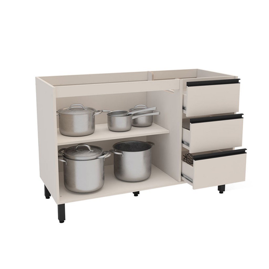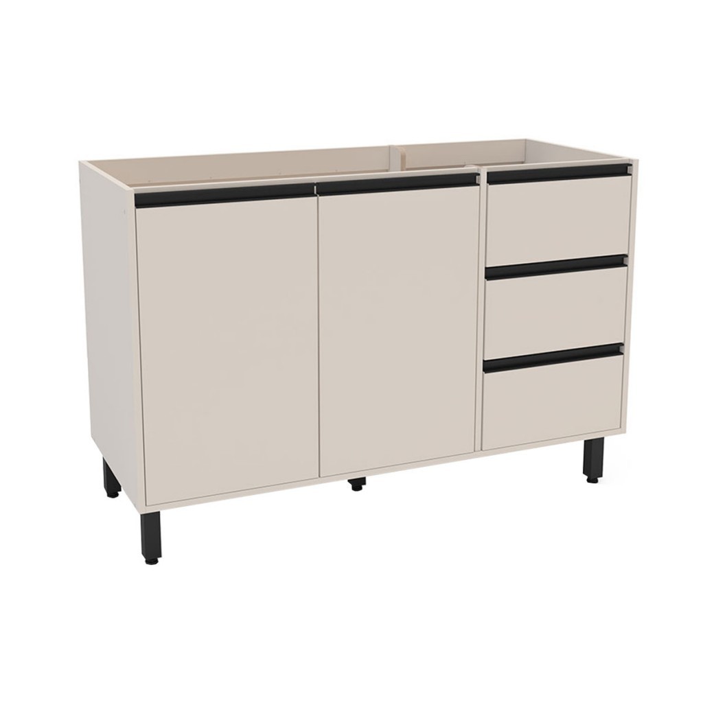 Balcão de Cozinha para Pia 120 Cm Koya 2 Portas 3 Gavetas