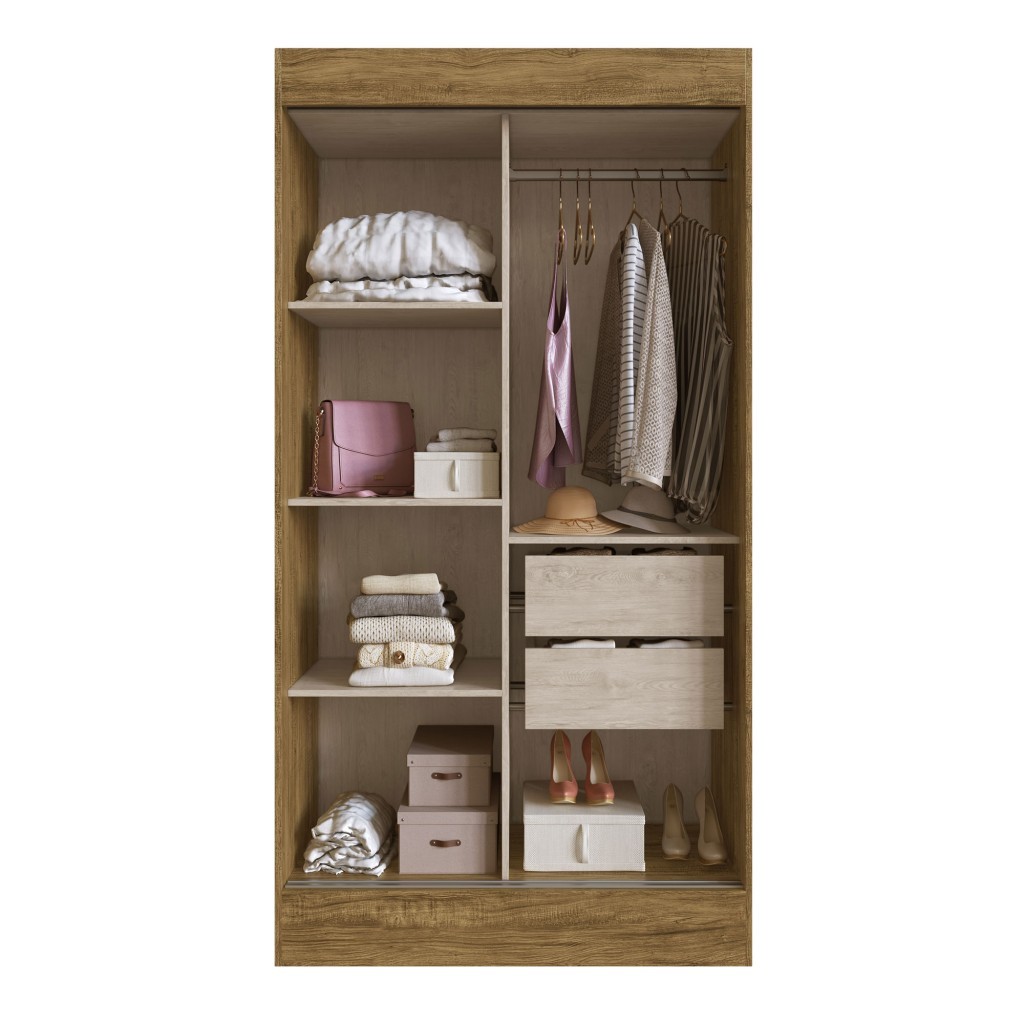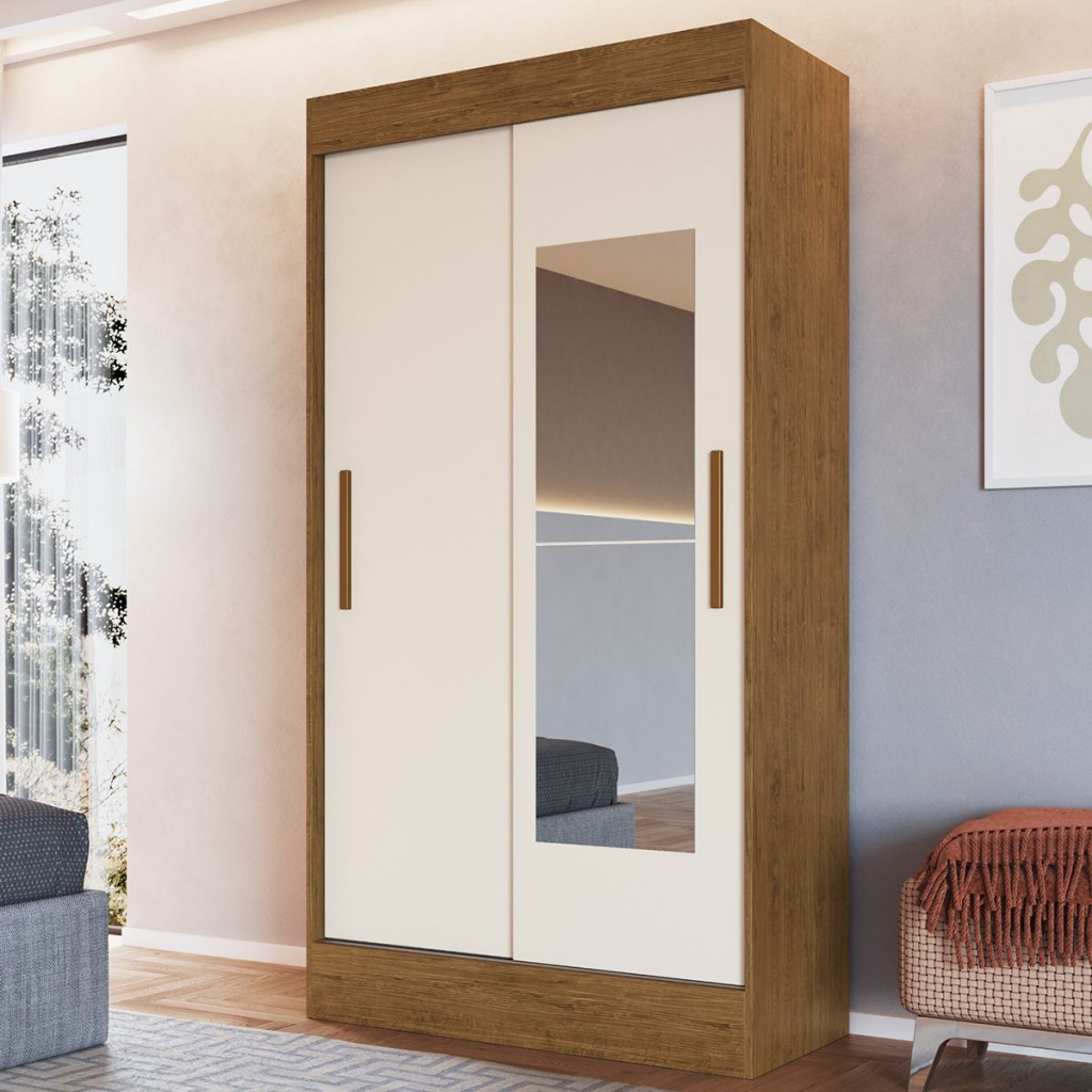 Guarda-Roupa Solteiro Lyon 2 Portas 2 Gavetas com Espelho - Doripel Móveis