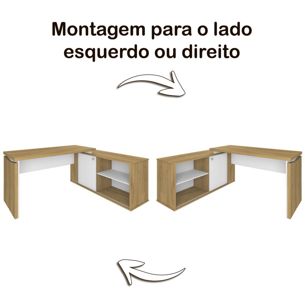 Mesa Escrivaninha Smart 1 Porta 2 Prateleiras Olmo/Branco - Artany Móveis