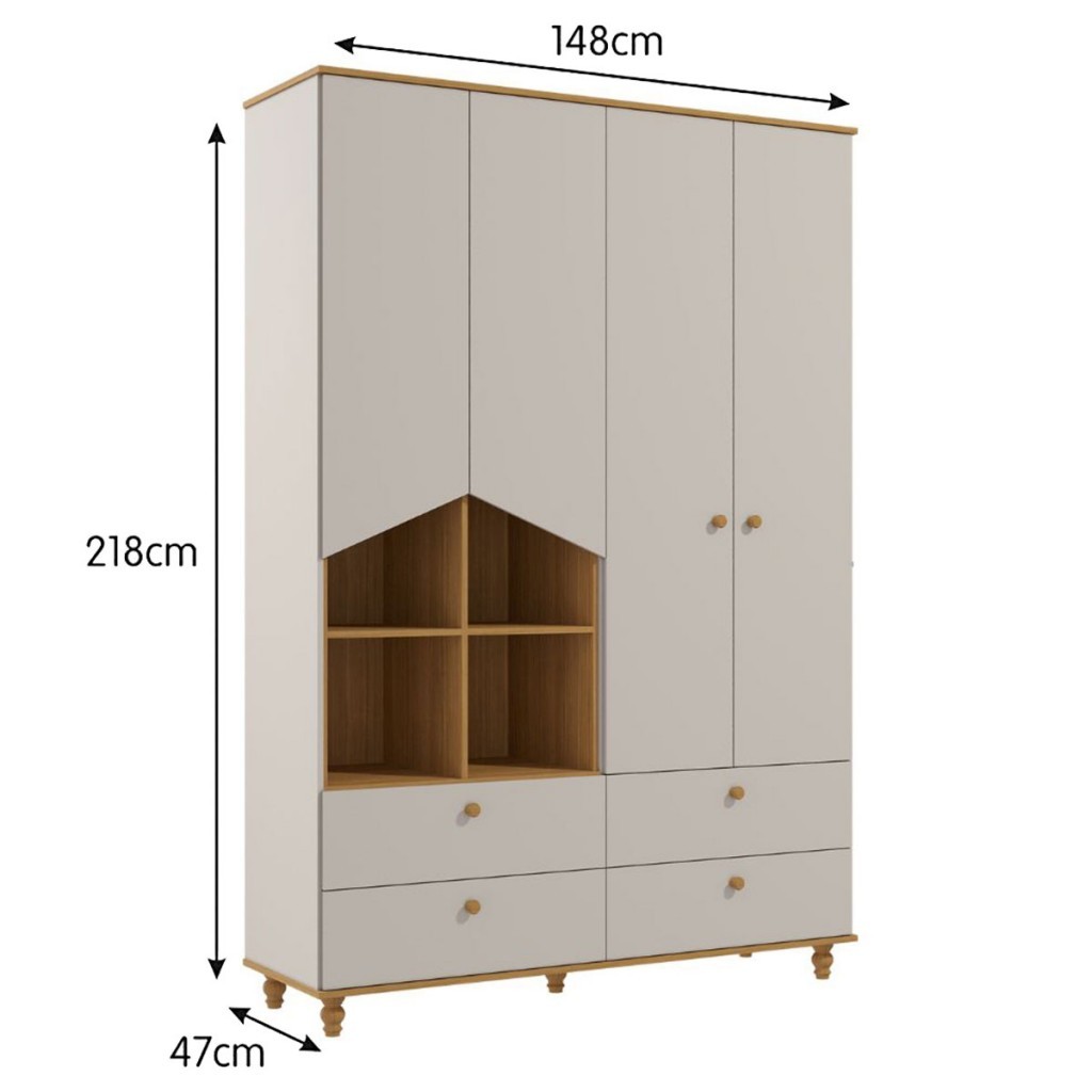 Guarda-Roupa de Bebê Casinha 4 Portas 4 Gavetas 100% Mdf Off White/Nature - Permóbili