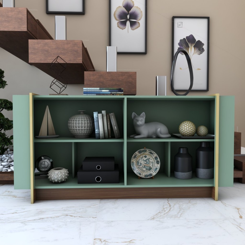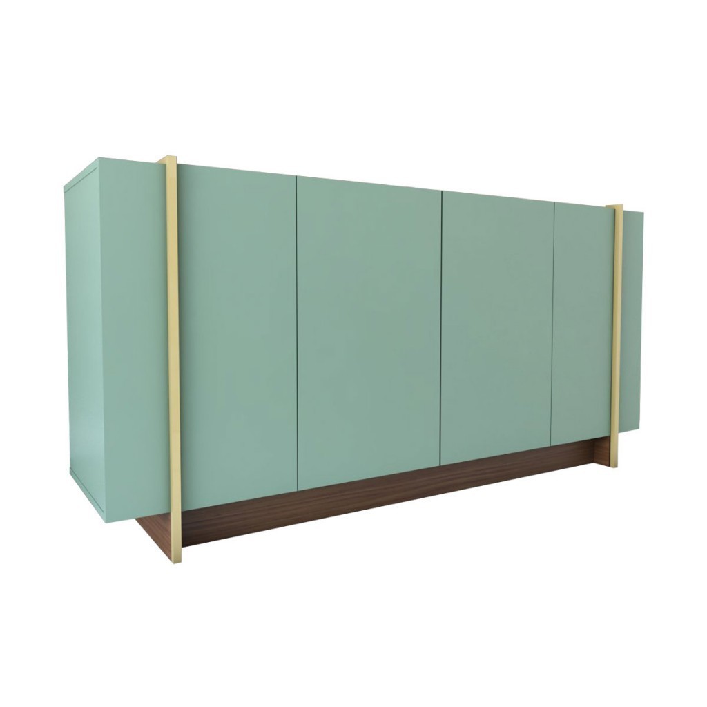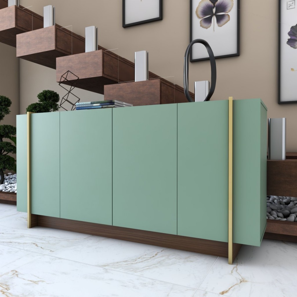 Balcão Buffet Balneário Camboriú 4 Portas 2 Prateleiras Hortelã/Dourado - Panorama Móveis