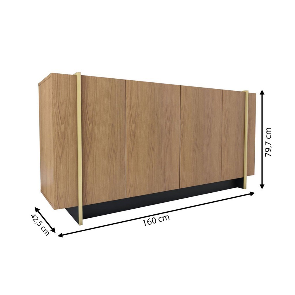 Balcão Buffet Balneário Camboriú 4 Portas 2 Prateleiras Freijó/Dourado - Panorama Móveis