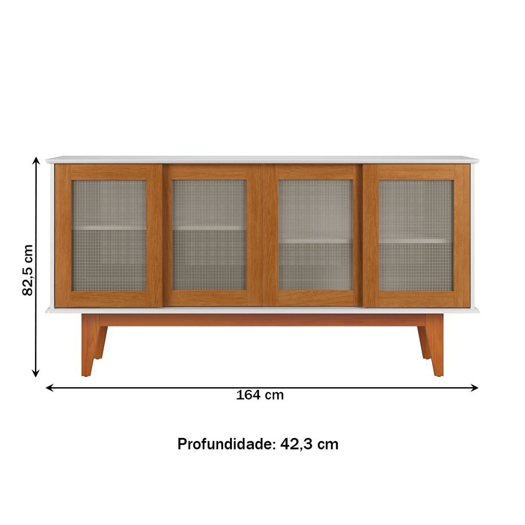 Balcão Buffet Detroit 4 Portas 4 Prateleiras Branco/Nature - Tebarrot