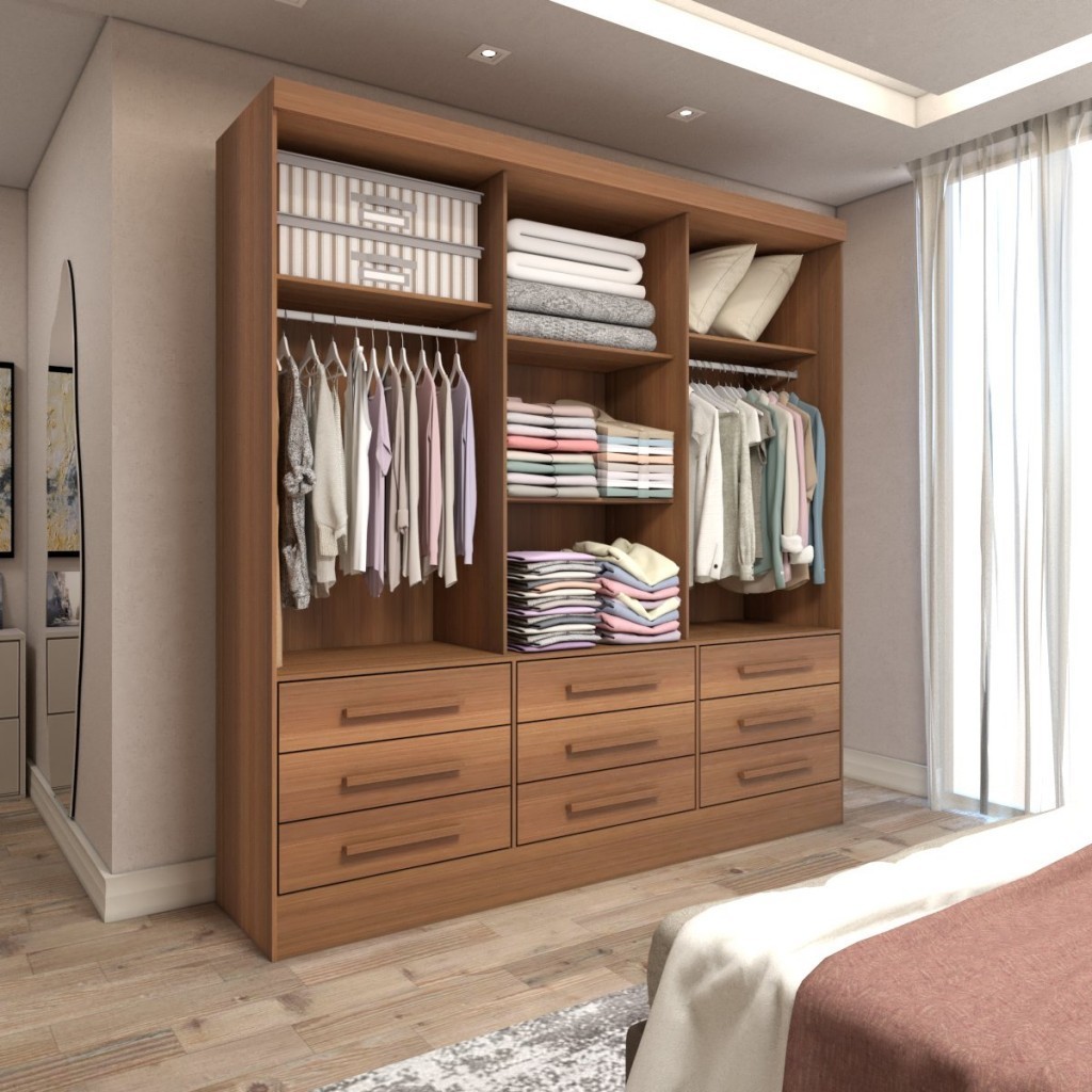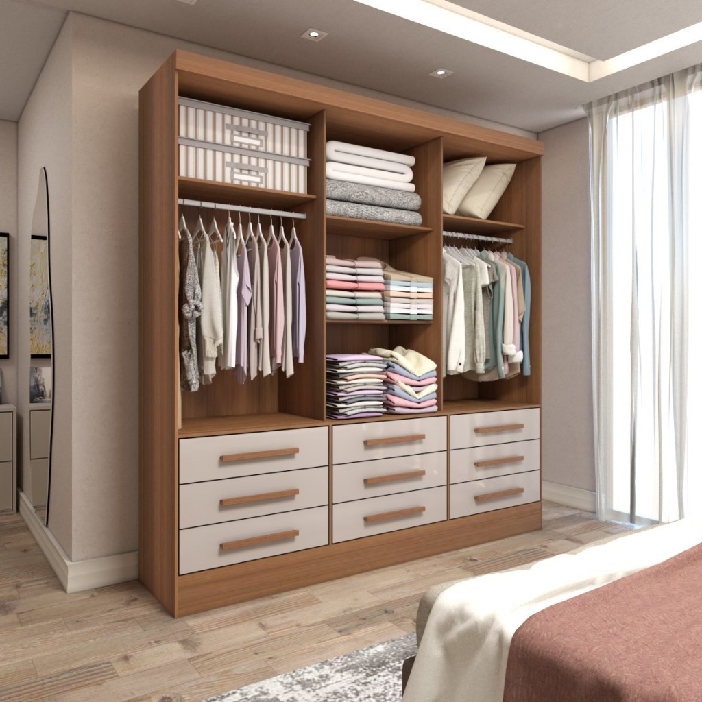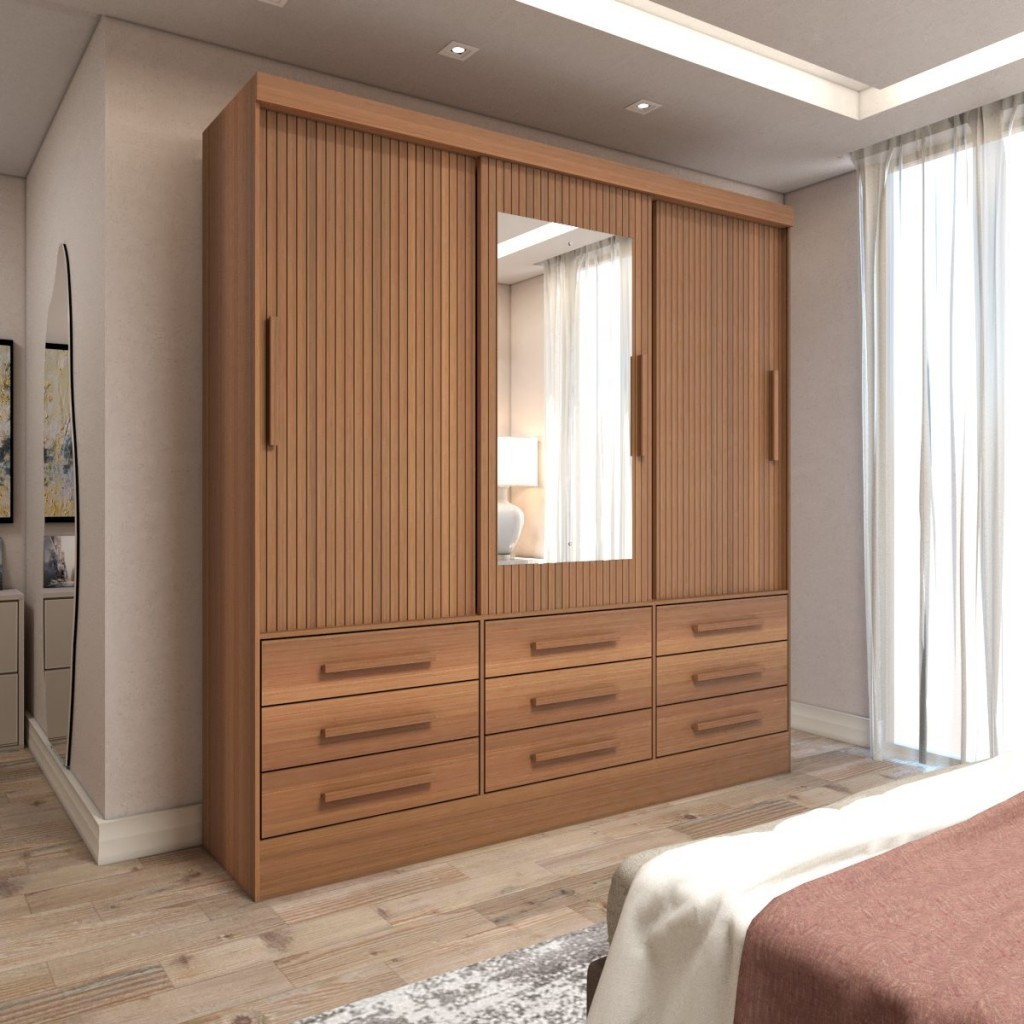 Guarda-Roupa Casal Ferrara 3 Portas 9 Gavetas com Espelho