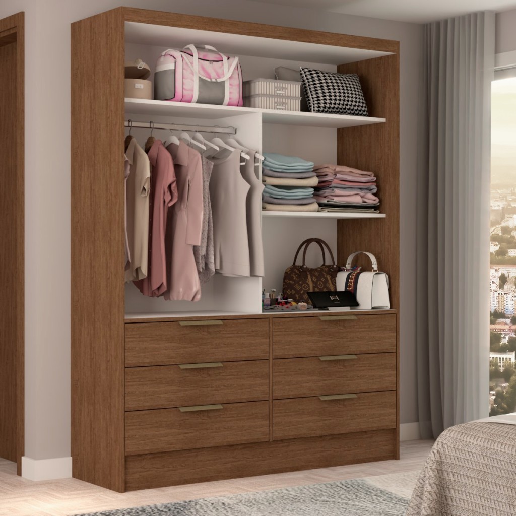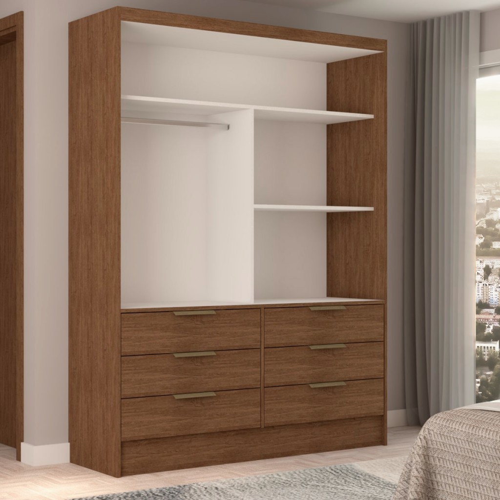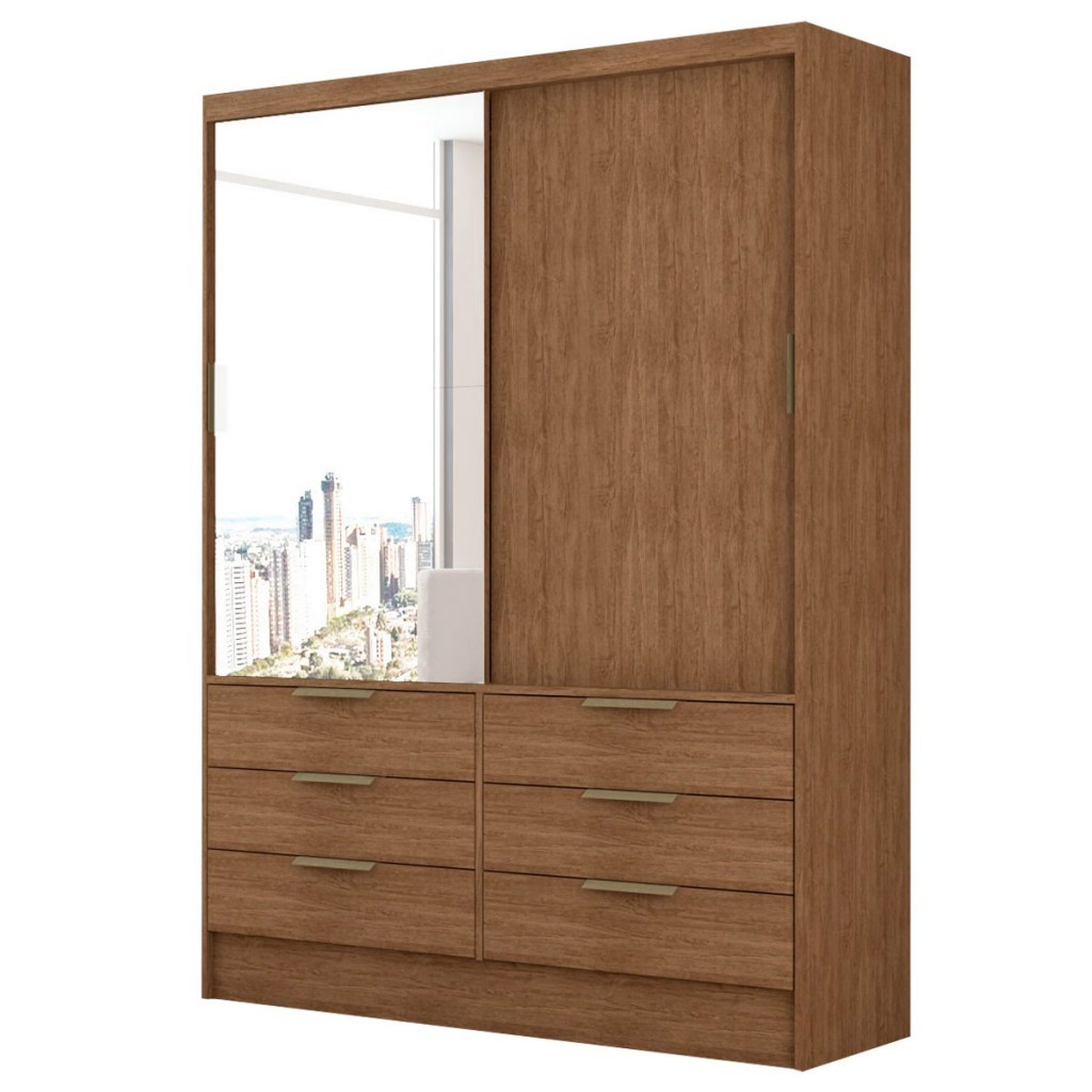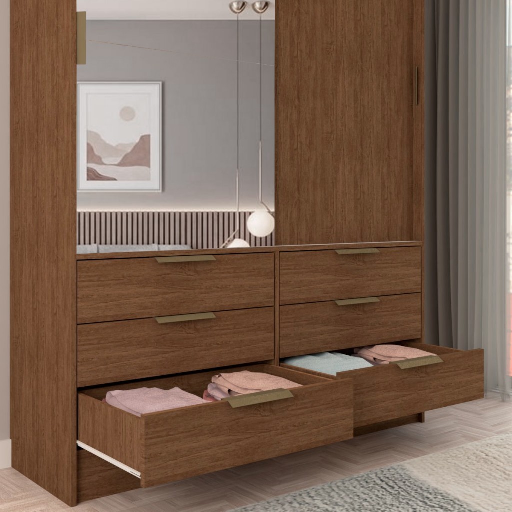 Guarda-Roupa Solteiro Diamantina 2 Portas de Correr 6 Gavetas com Espelho Marrom - Panorama Móveis