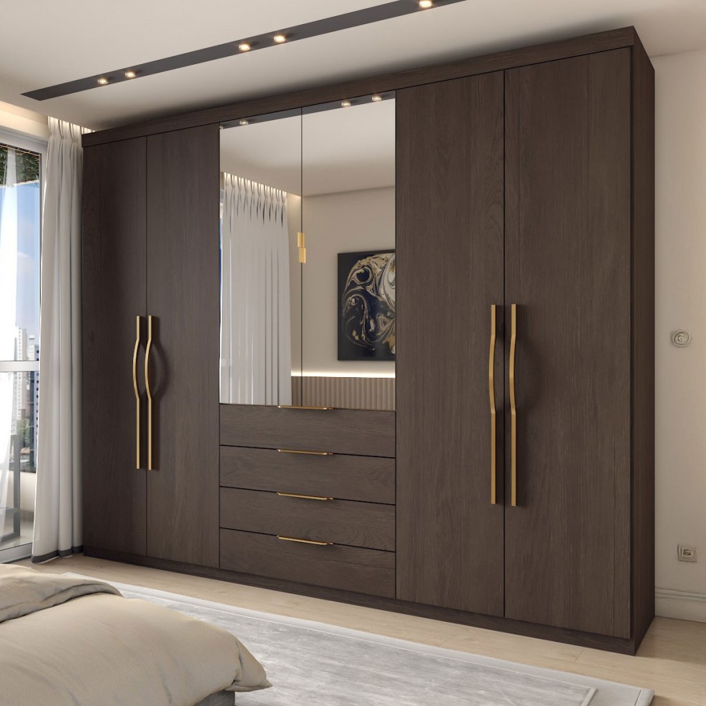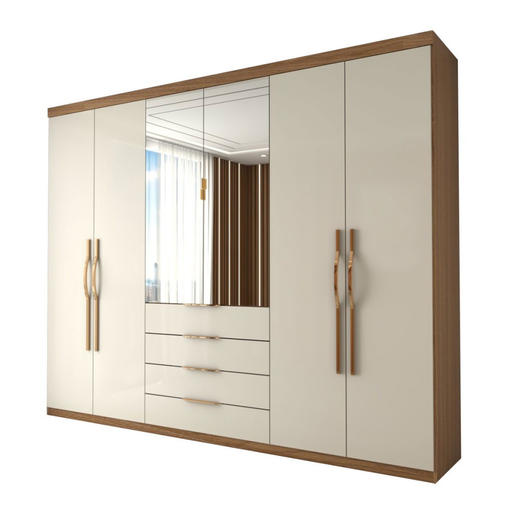 Guarda-Roupa Casal 6 Portas Aquiles Cinamomo/Off White - Panorama Móveis
