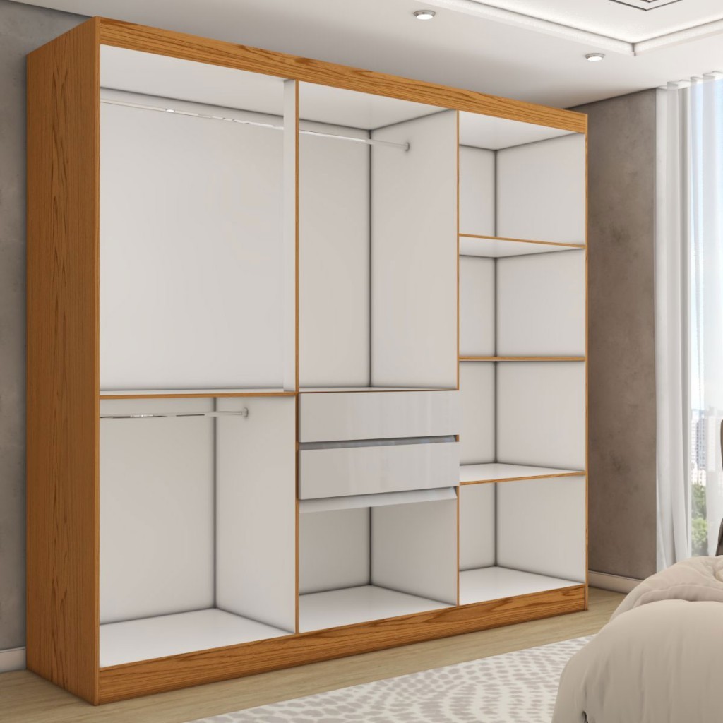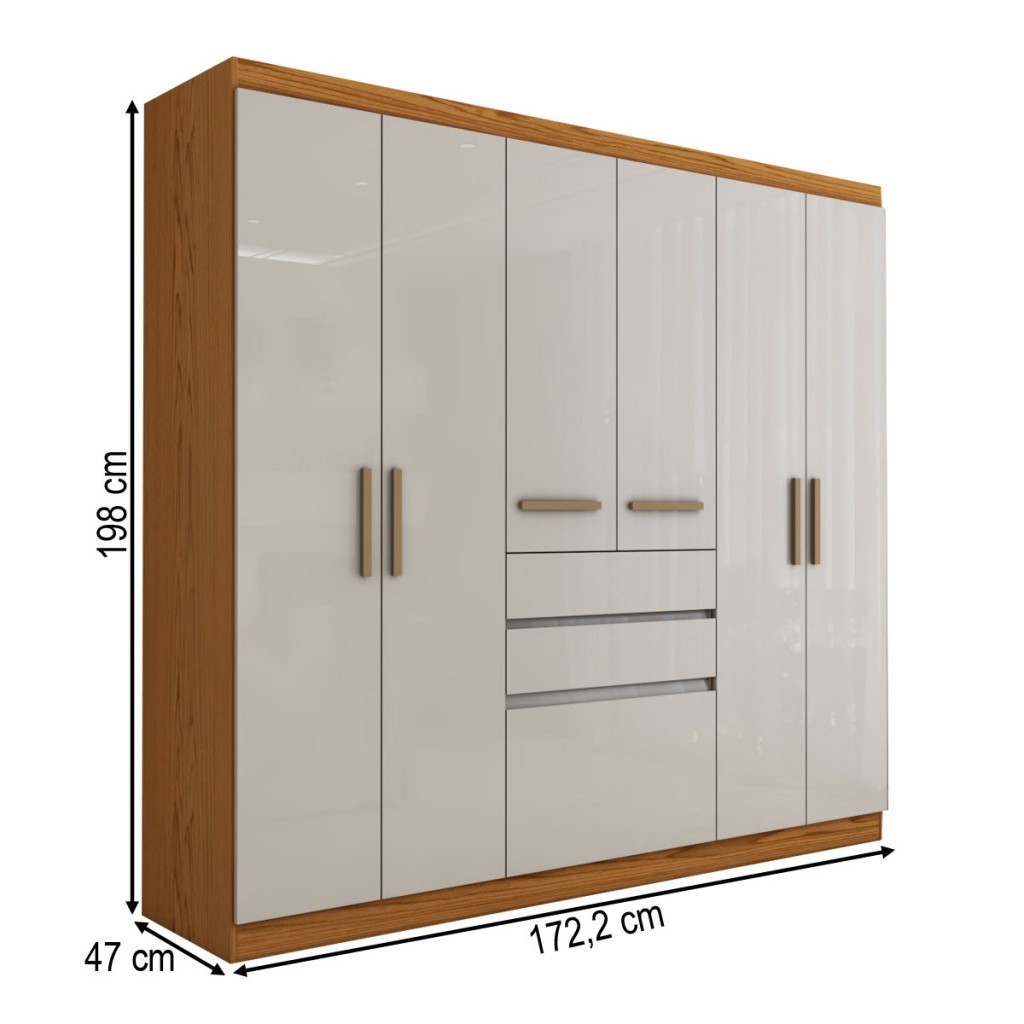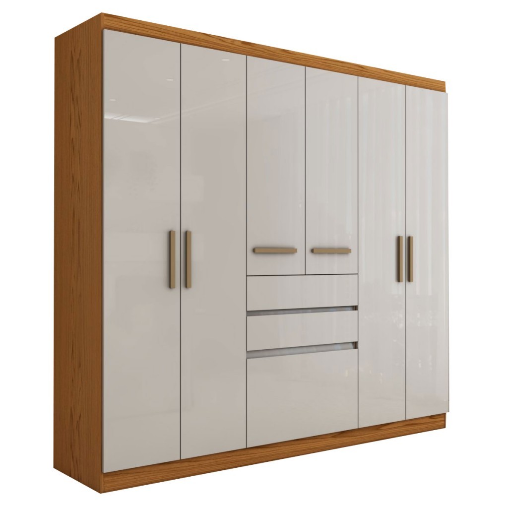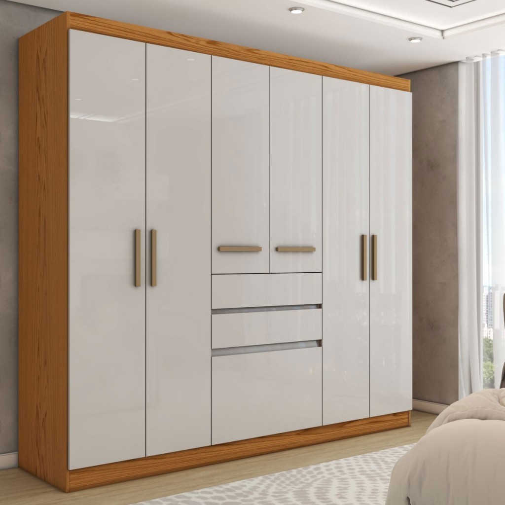 Guarda-Roupa Solteiro Naturale 6 Portas 3 Gavetas Freijó/Off White Laca - Panorama Móveis