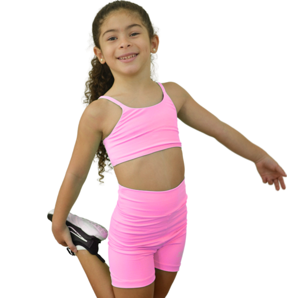 Conjunto Fitness Infantil Feminino Top E Short De Poliamida