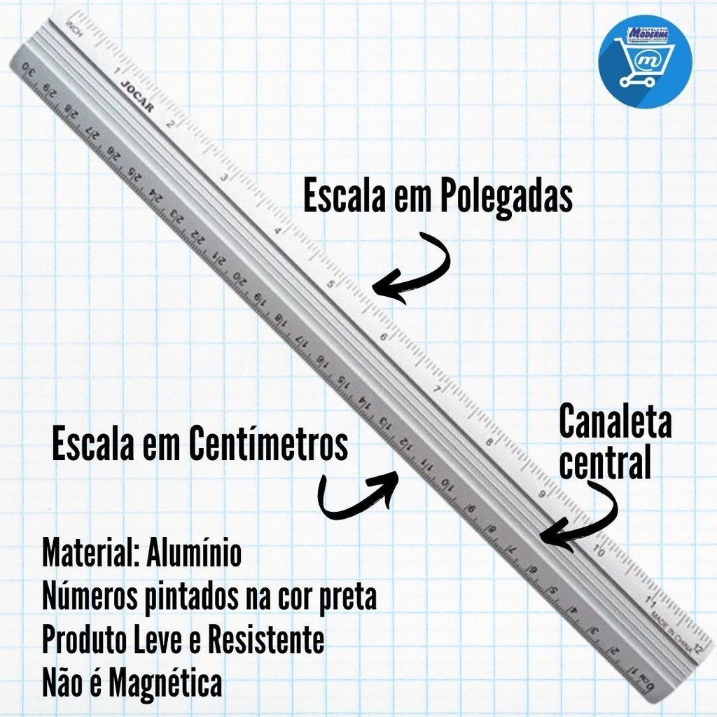 Régua em Alumínio 30cm Jocar Office