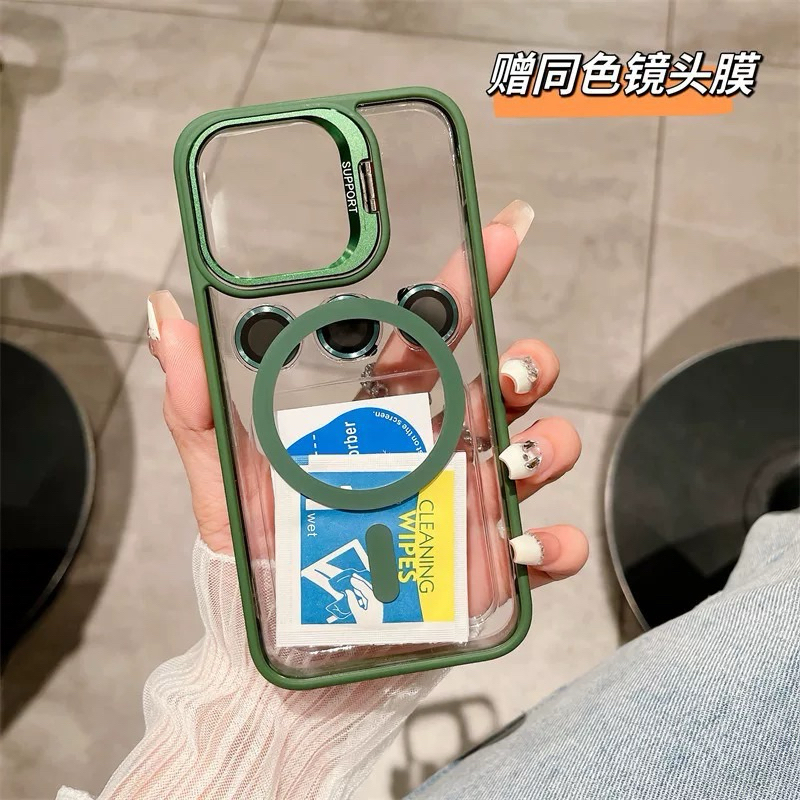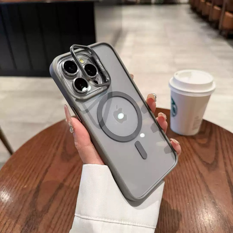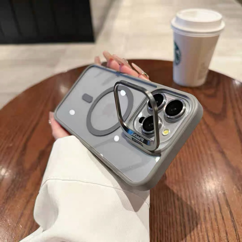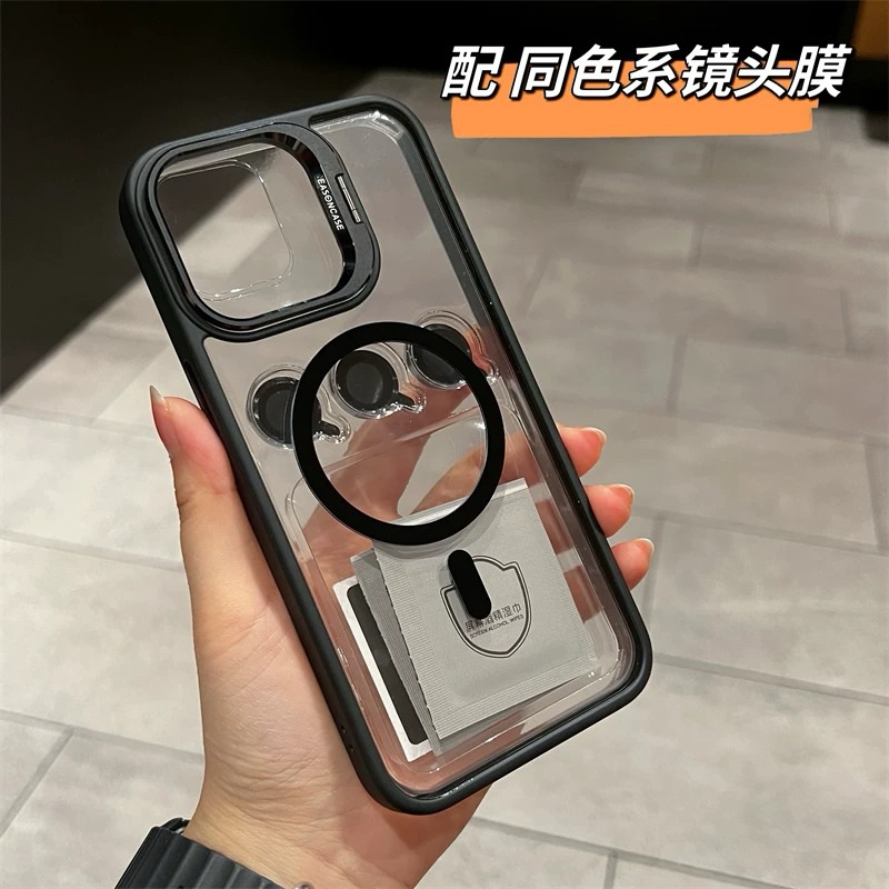 ③Capa Magnética Com suporte invisível para iPhone 15 14 13 12 11 Pro Max Capa Macia Com Proteção De Camera Lente