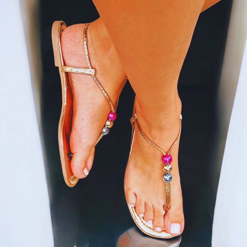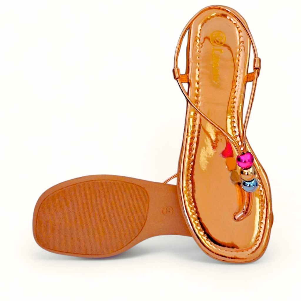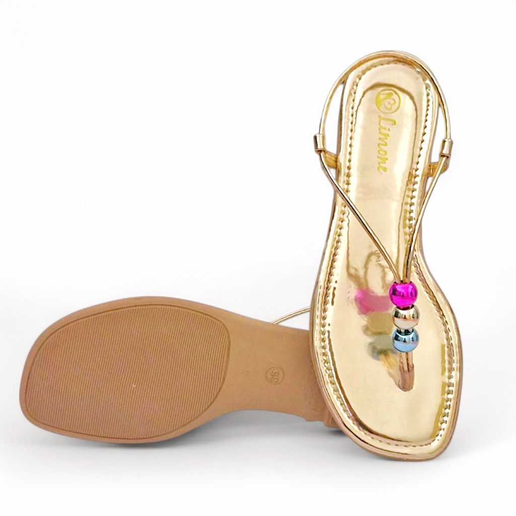 Sandália Rasteira Flat Ajustável com Traseiro de Regulagem De Bolinhas Metalizadas Moda Feminina Loja de Fábrica